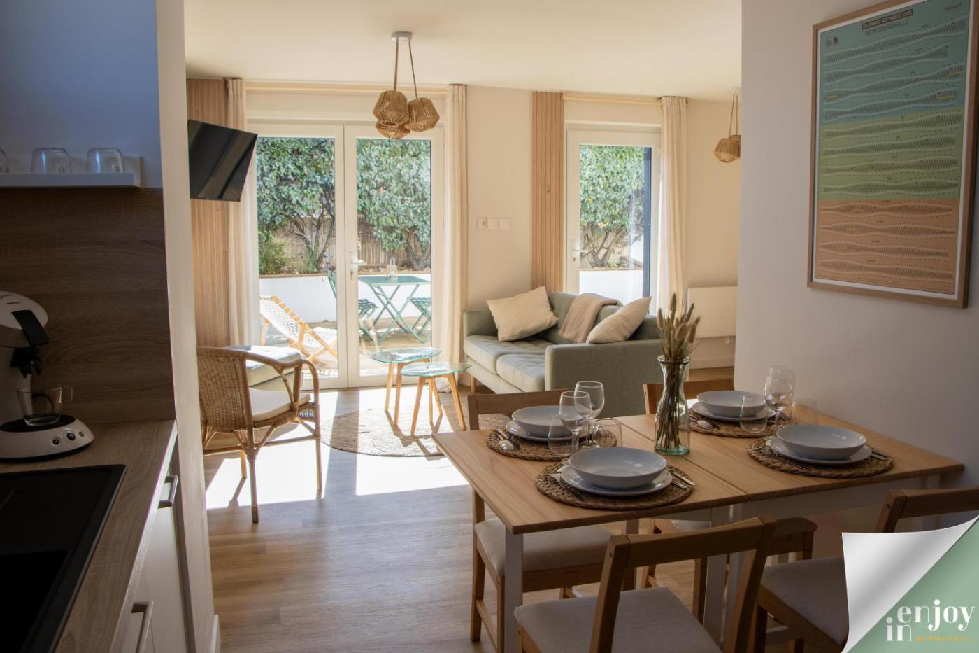 Appartement 2 Chambres. This apartment includes 1 living room, 2 separate bedrooms and 1 bathroom with a walk-in shower and a hairdryer. Guests will find a stovetop, a refrigerator, a dishwasher and kitchenware in the well-fitted kitchen. The apartment also features a barbecue. This apartment has a washing machine, soundproof walls, a flat-screen TV with streaming services and a terrace. The unit has 3 beds.