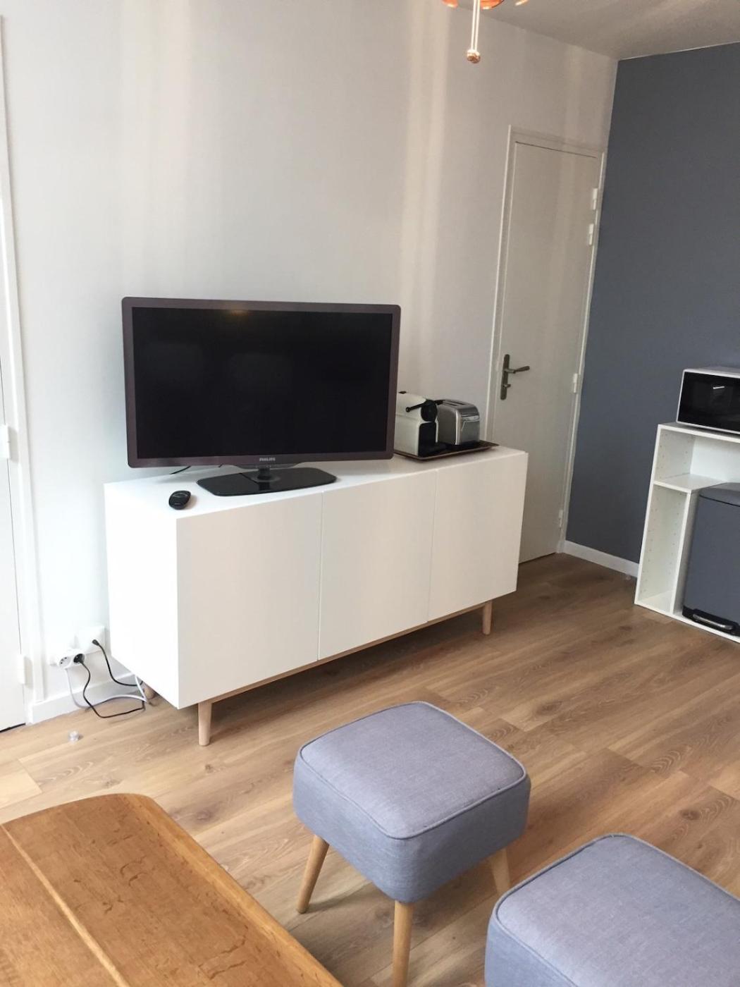 Appartement 1 Chambre. Boasting a private entrance, this apartment also includes 1 bedroom, a seating area and 1 bathroom with a shower and a hairdryer. The well-fitted kitchen has a stovetop, a refrigerator, kitchenware and a microwave. The apartment offers a tea and coffee maker, a dining area, a wardrobe, a sofa, as well as a flat-screen TV. The unit has 1 bed.