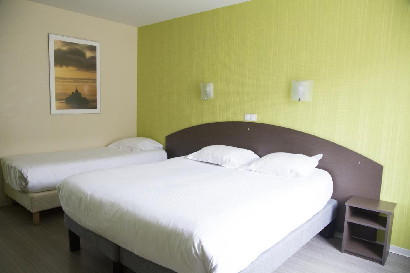 Chambre Quadruple. The quadruple room offers soundproof walls, a wardrobe, as well as a private bathroom featuring a shower and a hairdryer. This quadruple room features heating, a flat-screen TV and a quiet street view. The unit offers 3 beds. ;