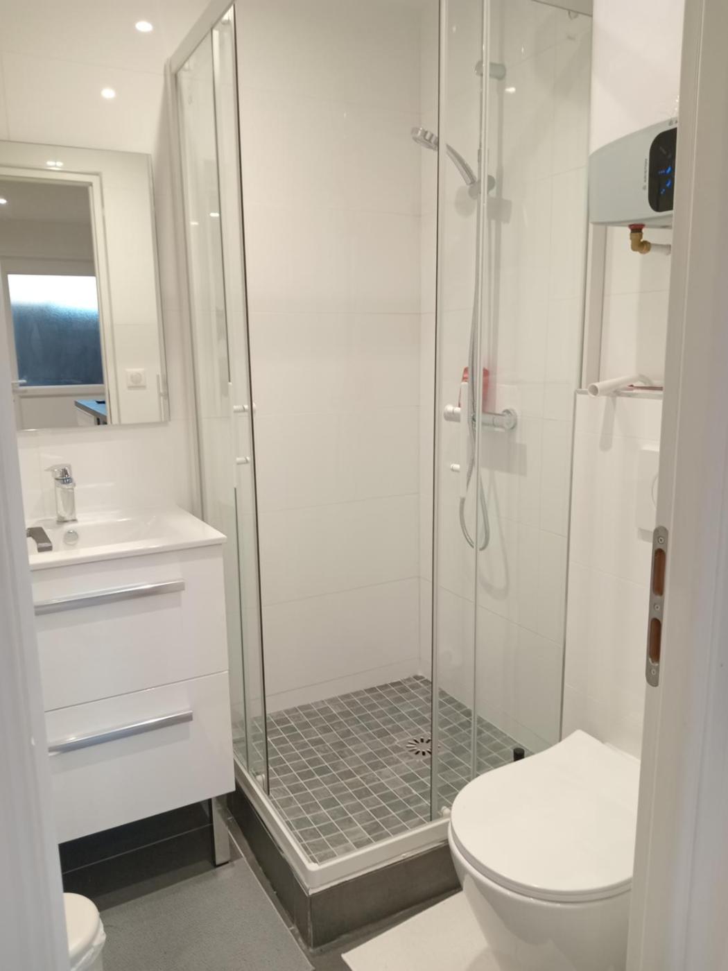 Appartement 1 Chambre. Featuring a private entrance, this apartment is comprised of 1 living room, 1 separate bedroom and 1 bathroom with a shower. In the kitchen, guests will find a stovetop, a refrigerator, kitchenware and a microwave. The apartment offers a tea and coffee maker, a seating area, a dining area, a sofa and a flat-screen TV with satellite channels. The unit offers 2 beds.