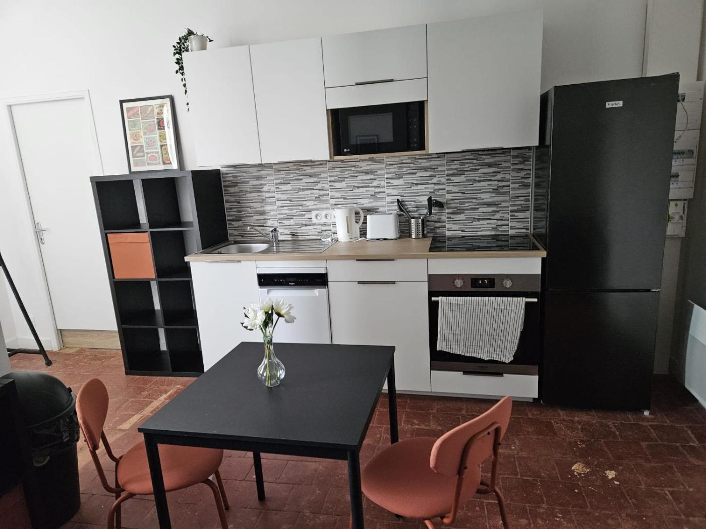 Appartement 1 Chambre. This apartment features a kitchen, a seating area, 1 separate bedroom and 1 bathroom with a shower and a hairdryer. Meals can be prepared in the kitchen, which has a stovetop, a refrigerator, a dishwasher and kitchenware. The apartment features a washing machine, a tea and coffee maker, a dining area, a sofa, as well as a flat-screen TV. The unit has 1 bed.