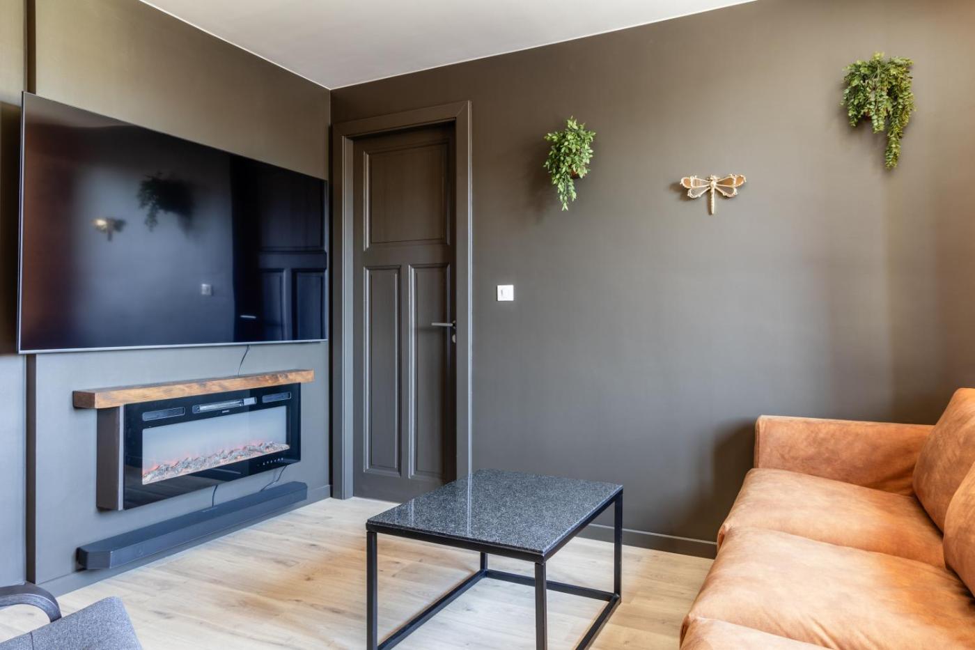 Appartement 2 Chambres Deluxe. The fireplace is the standout feature of this apartment. Boasting a private entrance, this apartment also features 2 bedrooms, a seating area and 1 bathroom with a shower and a hairdryer. In the well-fitted kitchen, guests will find a stovetop, a refrigerator, kitchenware and an oven. The apartment features a flat-screen TV with streaming services, soundproof walls, a tea and coffee maker, a dining area as well as ancourtyard view. The unit has 3 beds.