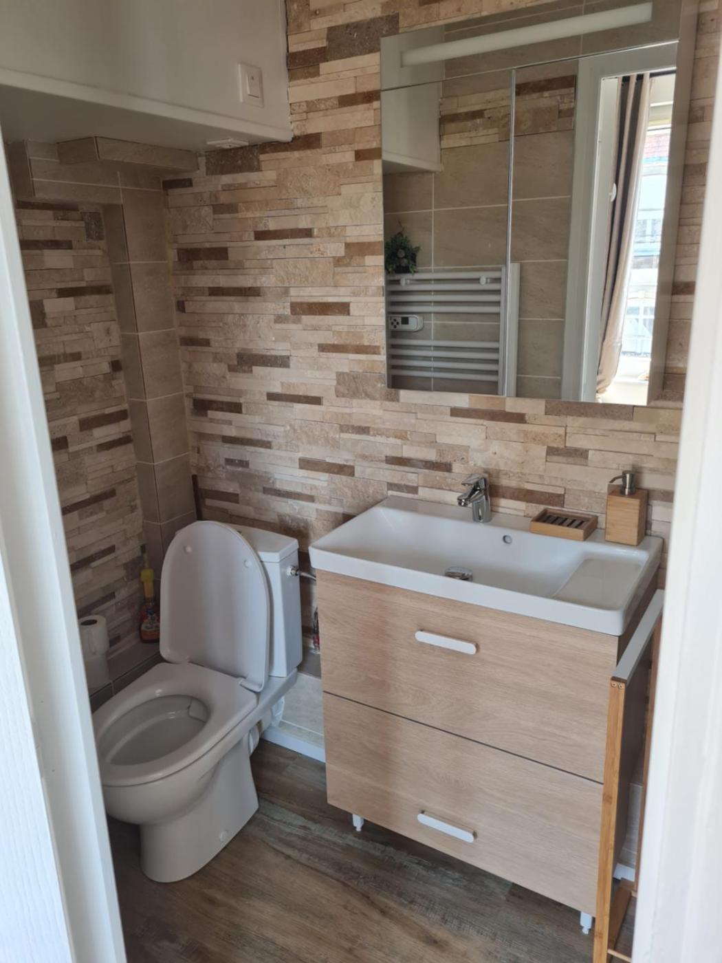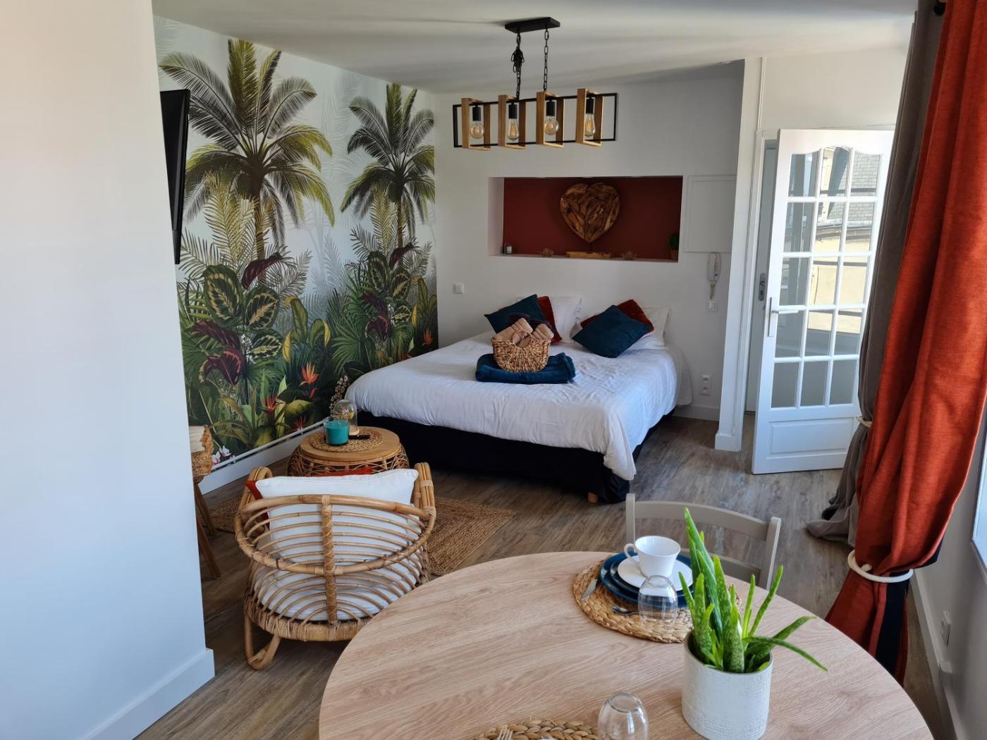 Appartement. Cet appartement comprend une entrée privée, un salon et une chambre séparée. La salle de bains est pourvue d’une baignoire et d’un sèche-cheveux. La cuisine bien équipée est munie de plaques de cuisson, d’un réfrigérateur et d’un micro-ondes. Des ustensiles de cuisine sont fournis. Offrant une vue sur la ville, cet appartement insonorisé dispose de parquet, d’un coin salon avec une télévision à écran plat et d’un plateaubouilloire. Ce logement comporte un lit. ;