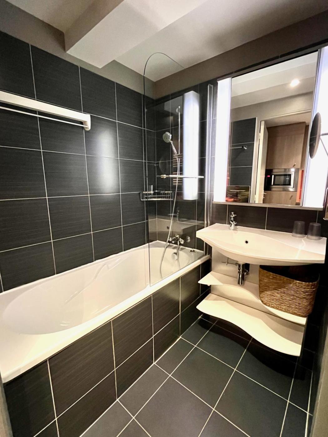Appartement 1 Chambre. This apartment consists of 1 bedroom, a kitchenette and 1 bathroom with a bath and a hairdryer. In the well-equipped kitchenette, guests will find a stovetop, a refrigerator, kitchenware and a microwave. The apartment provides a tea and coffee maker, a dining area, a wardrobe, heating, as well as a flat-screen TV. The unit offers 1 bed.