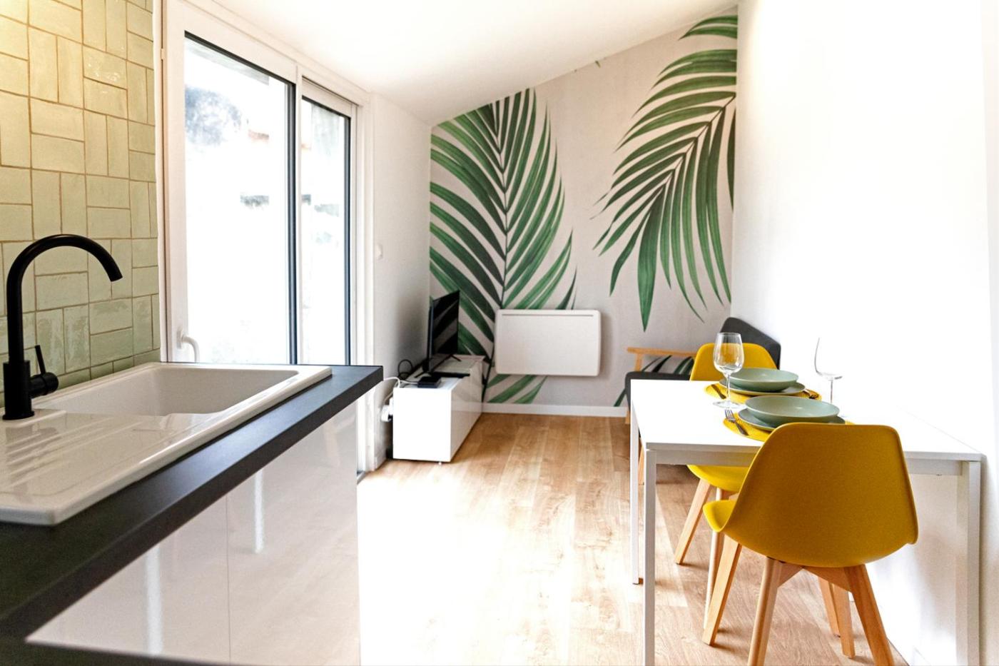 Appartement 1 Chambre. This apartment comprises 1 living room, 1 separate bedroom and 1 bathroom with a walk-in shower and free toiletries. In the well-equipped kitchen, guests will find a stovetop, a refrigerator, kitchenware and a microwave. Featuring a terrace with garden views, this apartment also provides a tea and coffee maker and a flat-screen TV. The unit offers 1 bed.