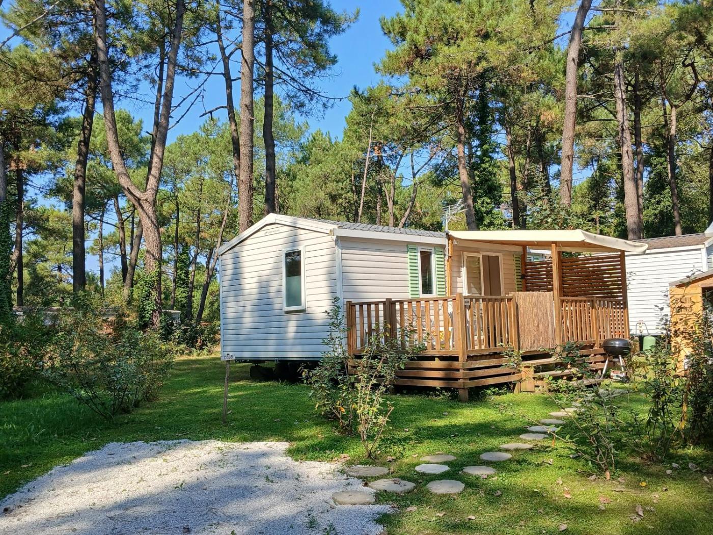 Mobile Home. This mobile home includes 1 living room, 2 separate bedrooms and 1 bathroom with a shower and a hairdryer. Guests will find a stovetop, a refrigerator, kitchenware and an oven in the well-fitted kitchen. The mobile home also features a barbecue. Boasting a terrace with garden views, this mobile home also offers a tea and coffee maker and a flat-screen TV. The unit has 5 beds.