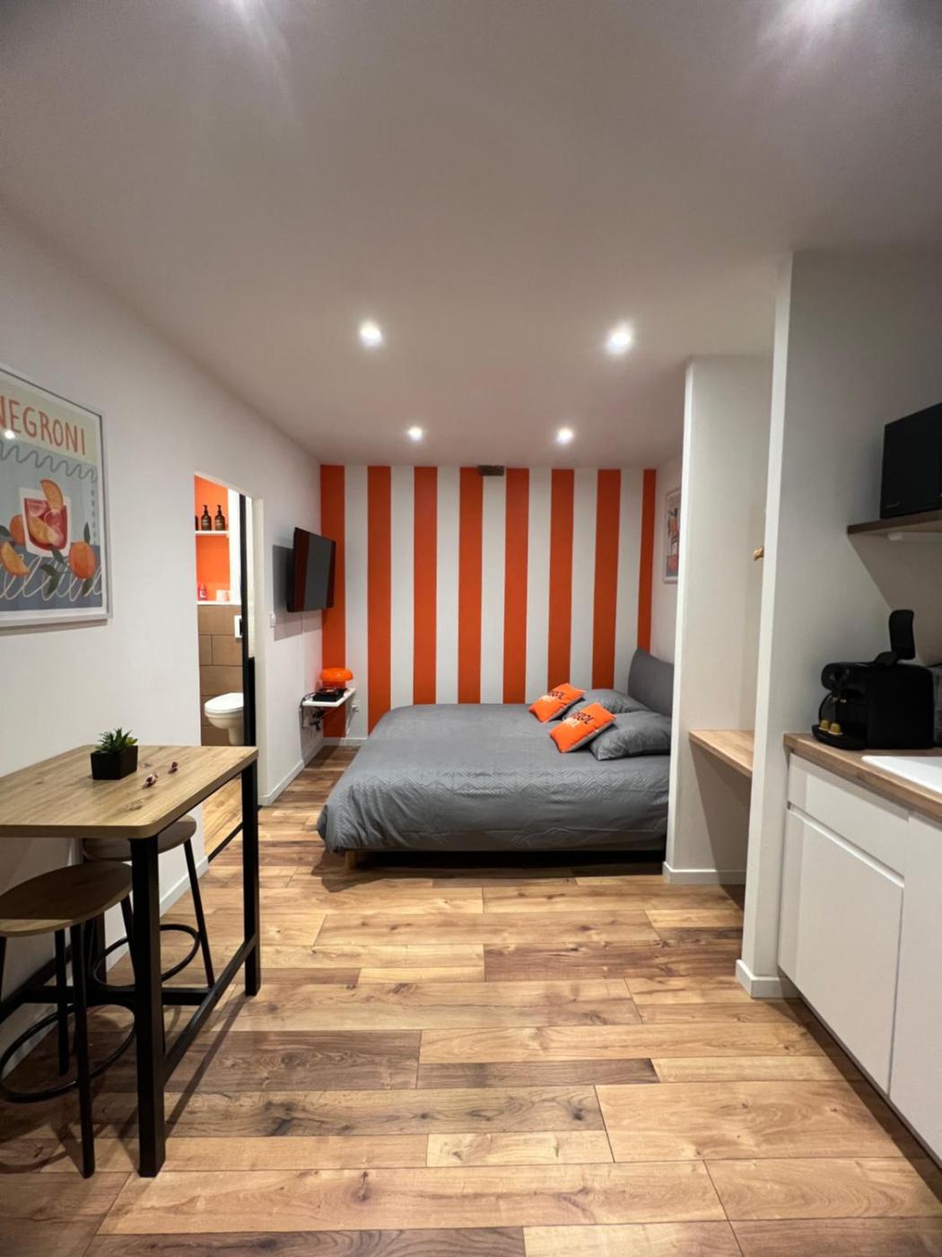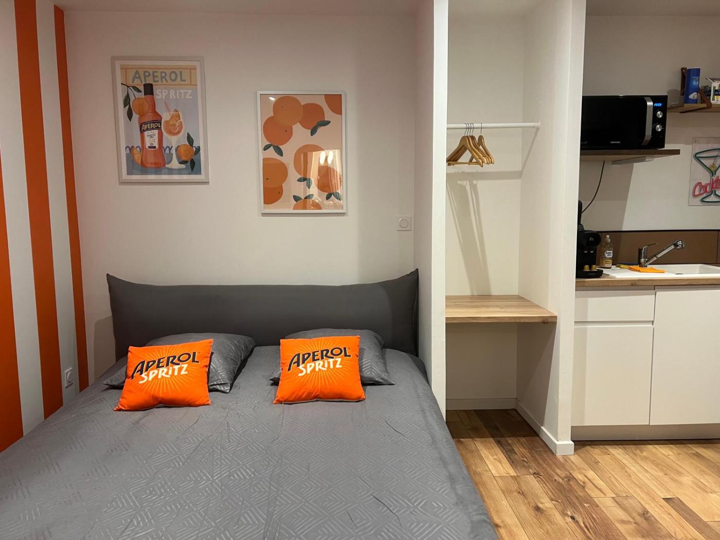 Appartement 1 Chambre. This apartment features 1 bedroom, a kitchen and 1 bathroom with a shower and a hairdryer. In the kitchen, guests will find a stovetop, a refrigerator, kitchenware and a microwave. The apartment features a tea and coffee maker, a dining area, a wardrobe, parquet floors, as well as a flat-screen TV. The unit has 1 bed.