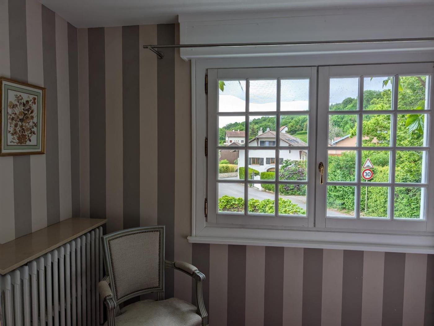 Chambre Triple – Vue sur Montagne. This room features a flat-screen TV with satellite channels and a safety deposit box. The en suite bathroom includes a hairdryer and free toiletries. Family room located on the second floor and overlooking the village of Echenevex and the Jura mountainside. ;