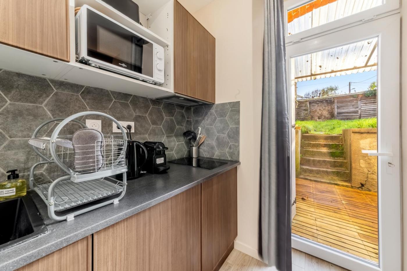 Appartement 1 Chambre. This apartment consists of 1 living room, 1 separate bedroom and 1 bathroom with a shower and free toiletries. Guests can make meals in the kitchen that is equipped with a stovetop, a refrigerator, kitchenware and a microwave. A seating area with a flat-screen TV, a coffee machine and a terrace are provided in this apartment. The unit offers 2 beds.