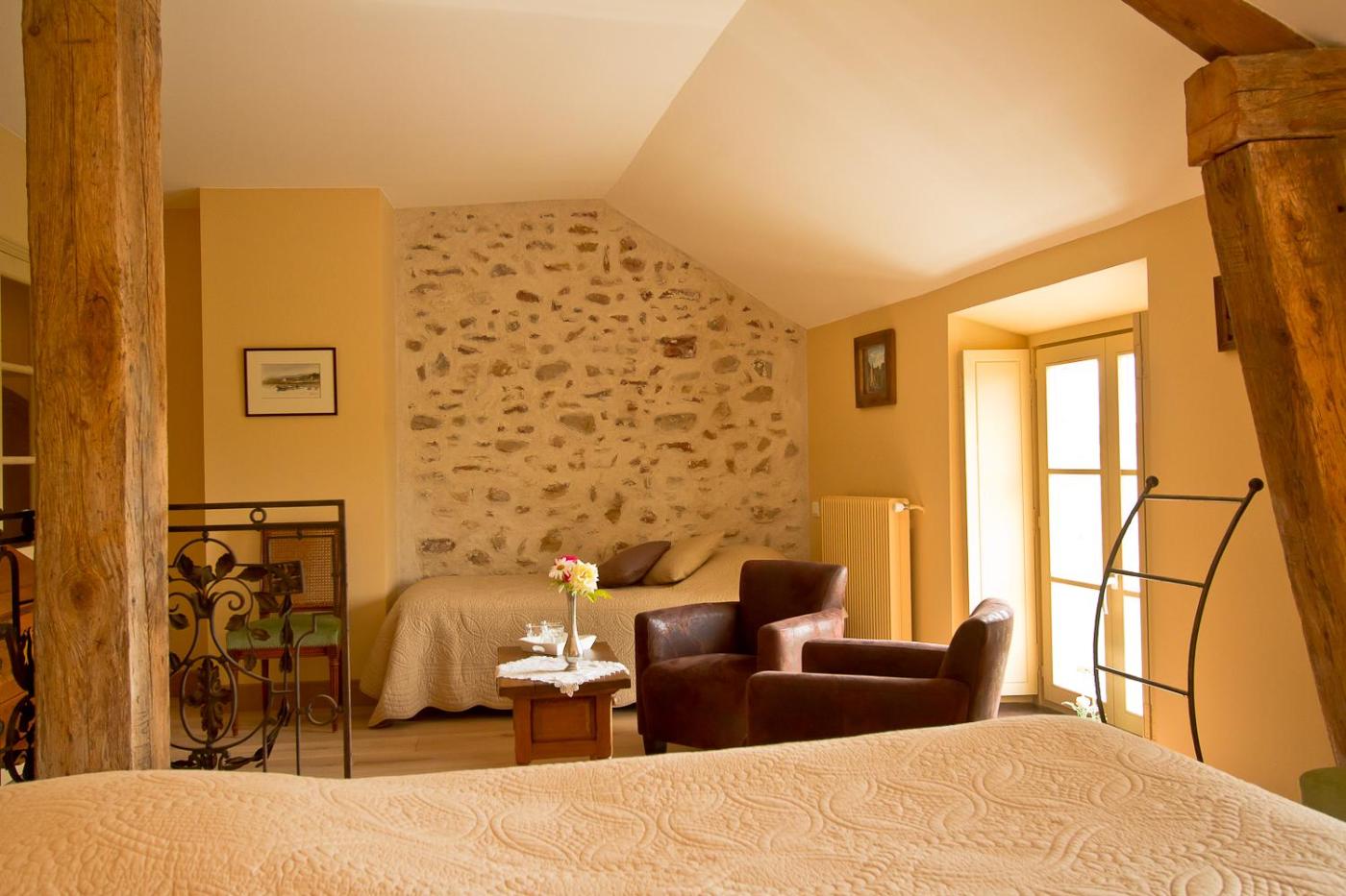 Chambre Lit Queen-Size. The double room features parquet floors, a seating area, a tea and coffee maker and a wardrobe. The unit has 1 bed. ;