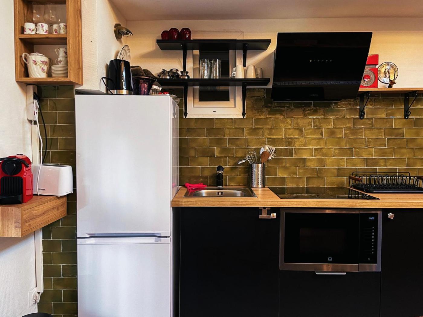 Appartement 2 Chambres. The fireplace is the standout feature of this apartment. Meals can be prepared in the well-fitted kitchen, which has a stovetop, a refrigerator, an oven and a microwave. The spacious apartment features a washing machine, a private entrance, a tea and coffee maker, heating and a flat-screen TV. The unit has 3 beds.