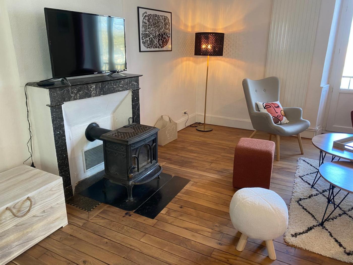 Maison 3 Chambres. This holiday home features a fireplace. Featuring a private entrance, this holiday home also comprises 3 bedrooms, a seating area and 2 bathrooms with a bath and a shower. Guests will find a stovetop, a refrigerator, a dishwasher and kitchenware in the well-fitted kitchen. The holiday home also provides guests with a barbecue. The holiday home provides a washing machine, soundproof walls, a minibar as well as a terrace with garden views. The unit offers 3 beds.