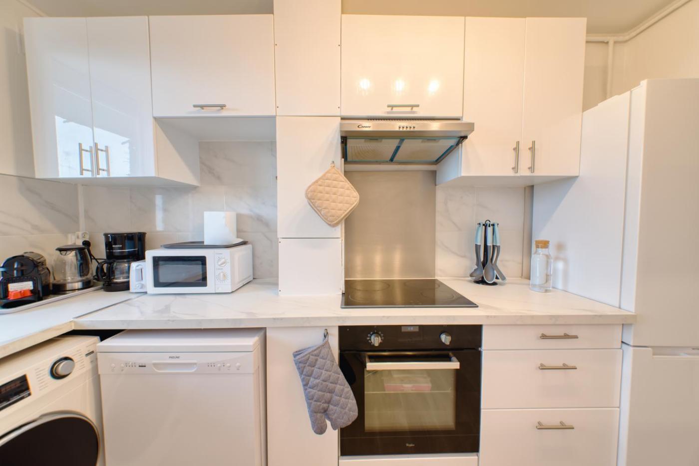 Appartement 3 Chambres. The apartments kitchen is available for cooking and storing food. The spacious apartment offers a washing machine, heating and a balcony. The unit has 2 beds.