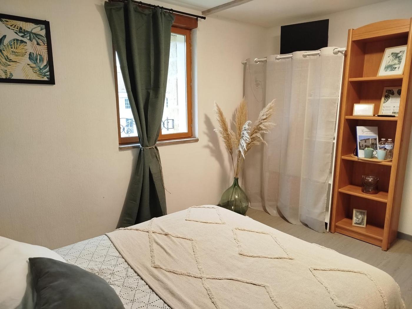 Chambre Double. This double rooms special feature is the fireplace. Guests will find a stovetop, a refrigerator, a dishwasher and kitchenware in the fully equipped kitchen. The double room also offers a barbecue. The double room provides a washing machine, a tea and coffee maker, a terrace with garden views as well as a shared bathroom featuring a shower. The unit offers 1 bed.