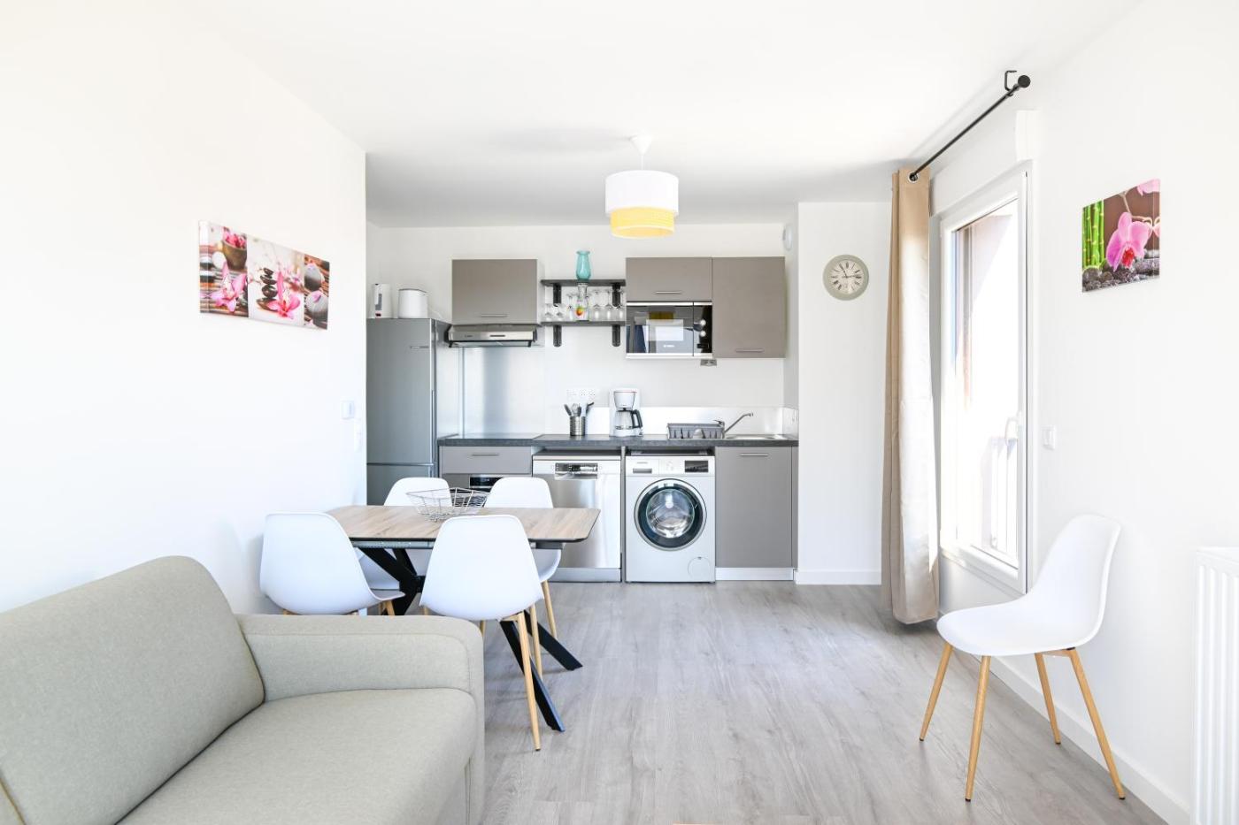 Appartement 2 Chambres. This apartment includes 1 living room, 2 separate bedrooms and 1 bathroom with a shower and a hairdryer. Guests can make meals in the kitchen that is fitted with a refrigerator, a dishwasher, kitchenware and an oven. This apartment has a washing machine, a tea and coffee maker, a TV and a terrace. The unit has 3 beds.