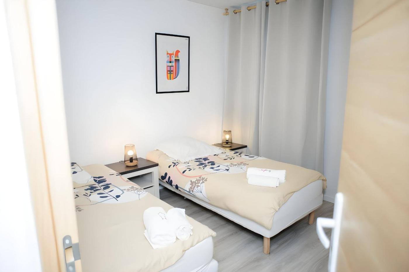 Cet appartement se compose de 3 chambres, dun salon, dune cuisine entièrement équipée avec un réfrigérateur, ainsi que de 1 salle de bains avec une douche et des articles de toilette gratuits. Des serviettes et du linge de lit sont mis à votre disposition.
