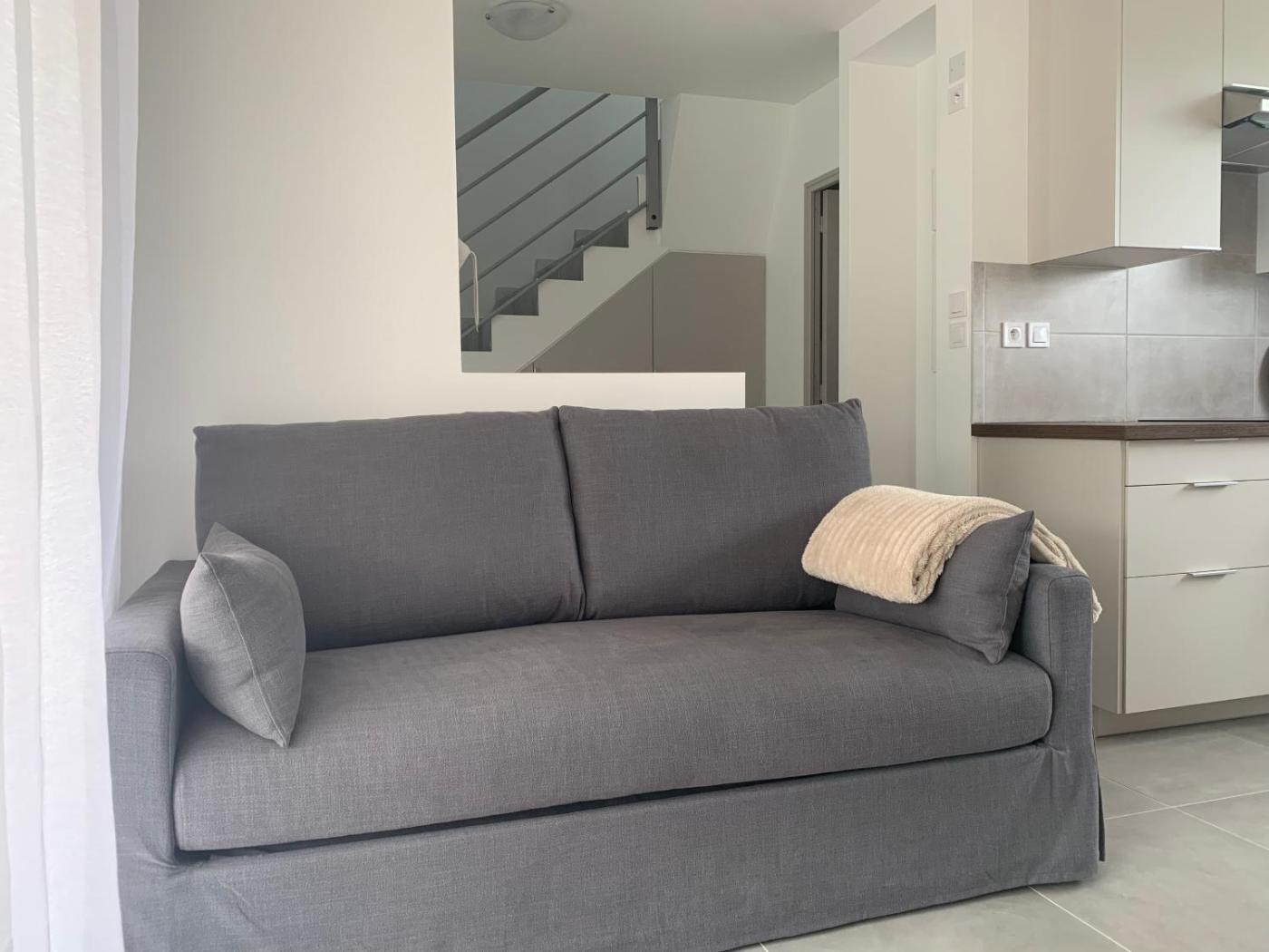 Maison 1 Chambre. Boasting a private entrance, this holiday home includes 1 living room, 1 separate bedroom and 1 bathroom with a walk-in shower and a hairdryer. In the well-fitted kitchen, guests will find a stovetop, a refrigerator, a dishwasher and kitchenware. Featuring a terrace with garden views, this holiday home also offers a coffee machine and a flat-screen TV with streaming services. The unit has 2 beds.