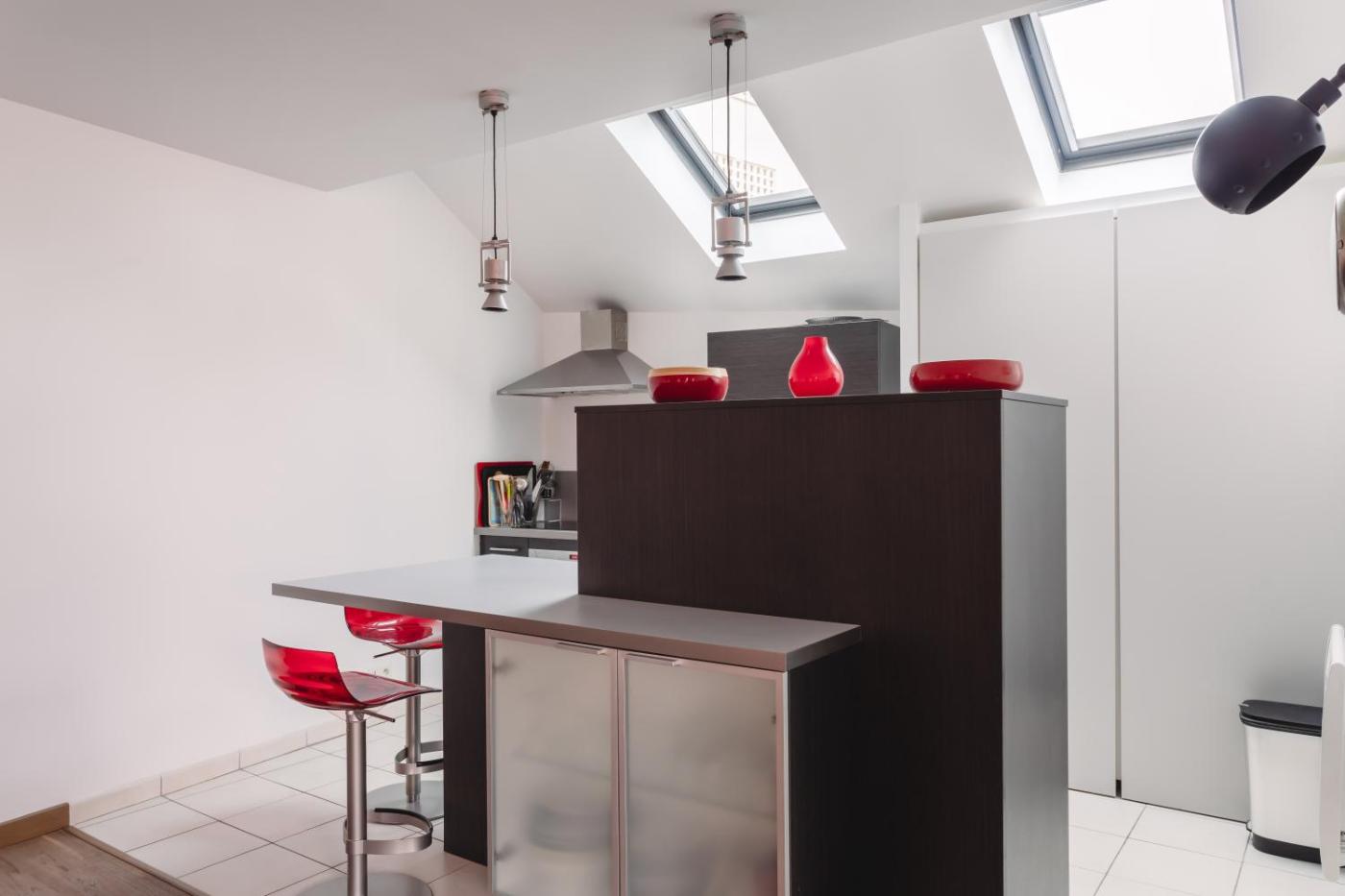 Appartement 1 Chambre. This apartment consists of 1 living room, 1 separate bedroom and 1 bathroom with a shower and free toiletries. The well-equipped kitchen features a refrigerator, a dishwasher, kitchenware and an oven. The apartment provides a tea and coffee maker, a wardrobe, a sofa, heating, as well as a TV. The unit offers 2 beds.