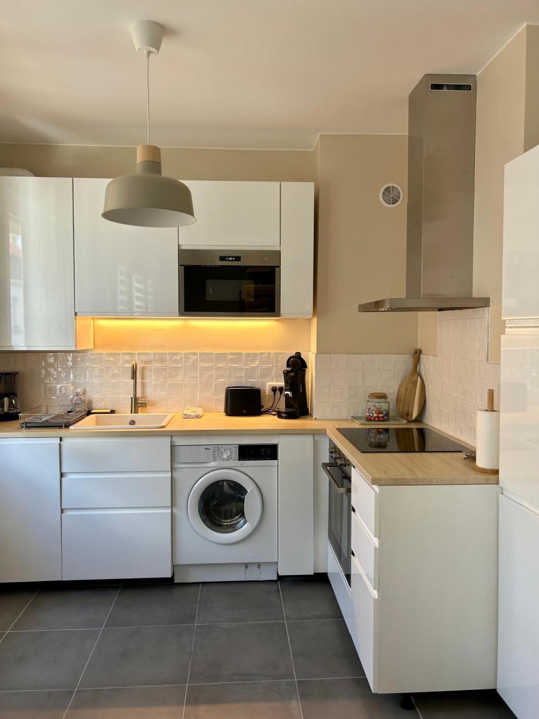 Cet appartement se compose de 2 chambres, dun salon, dune cuisine entièrement équipée avec un réfrigérateur et une machine à café, ainsi que de 1 salle de bains avec une douche et un sèche-cheveux. Des serviettes et du linge de lit sont disponibles.