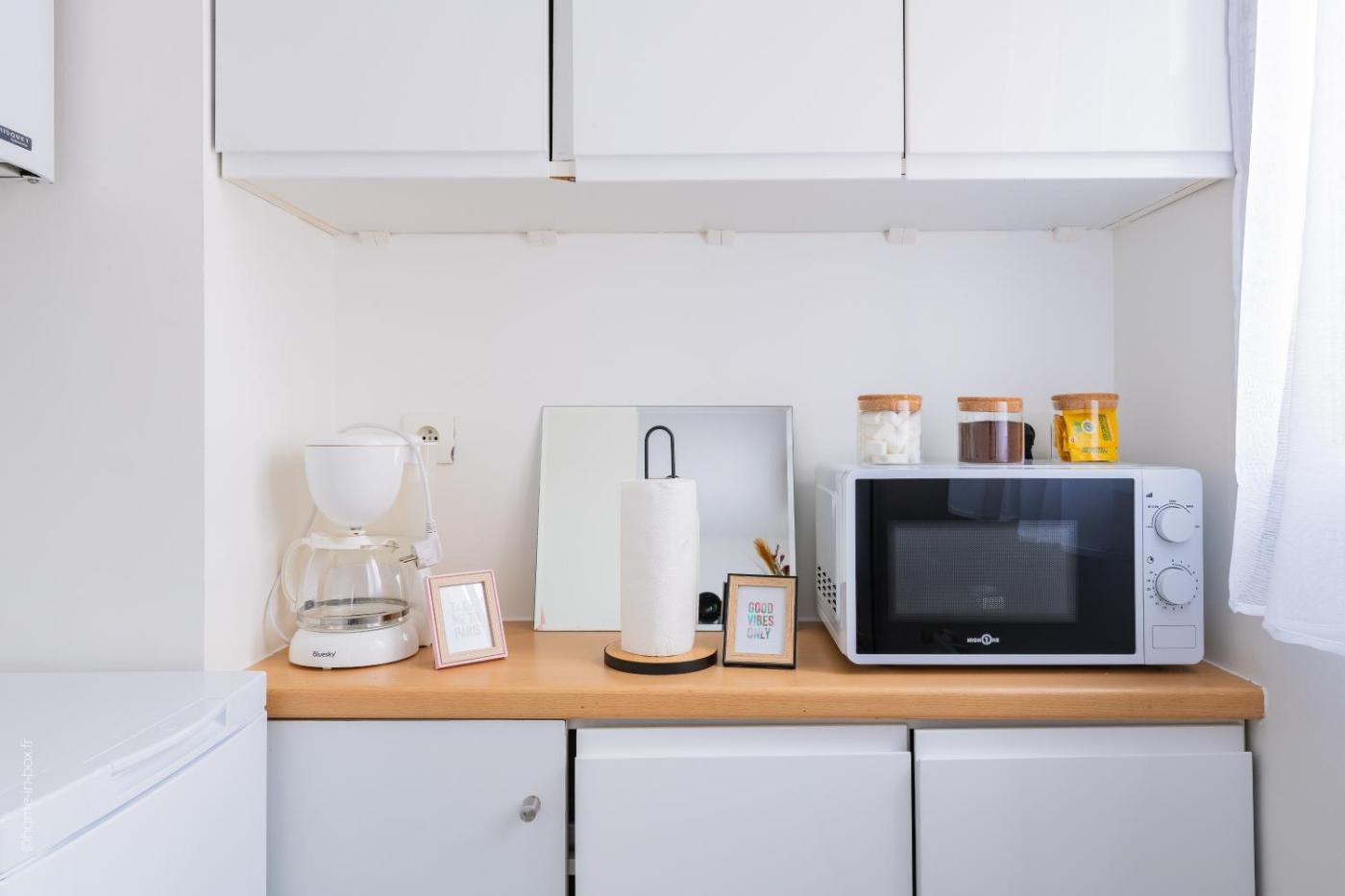 Appartement 1 Chambre. Guests can make meals in the kitchen that features a stovetop, a refrigerator, kitchenware and a microwave. This apartment has a washing machine, a tea and coffee maker, flat-screen TV, as well as chocolate for guests. The unit has 1 bed.
