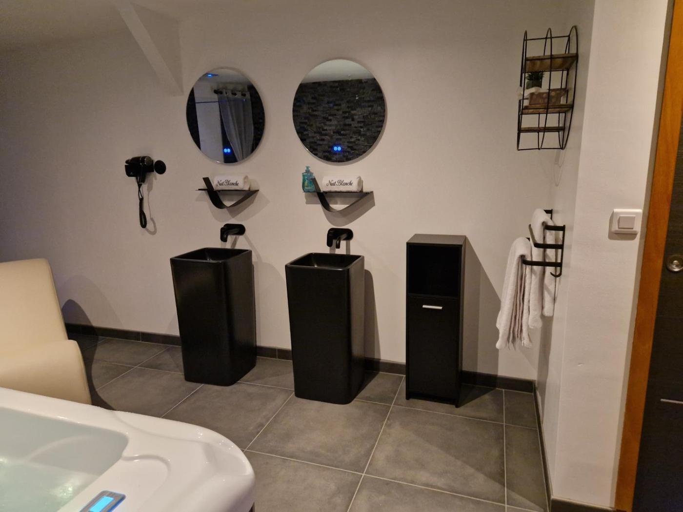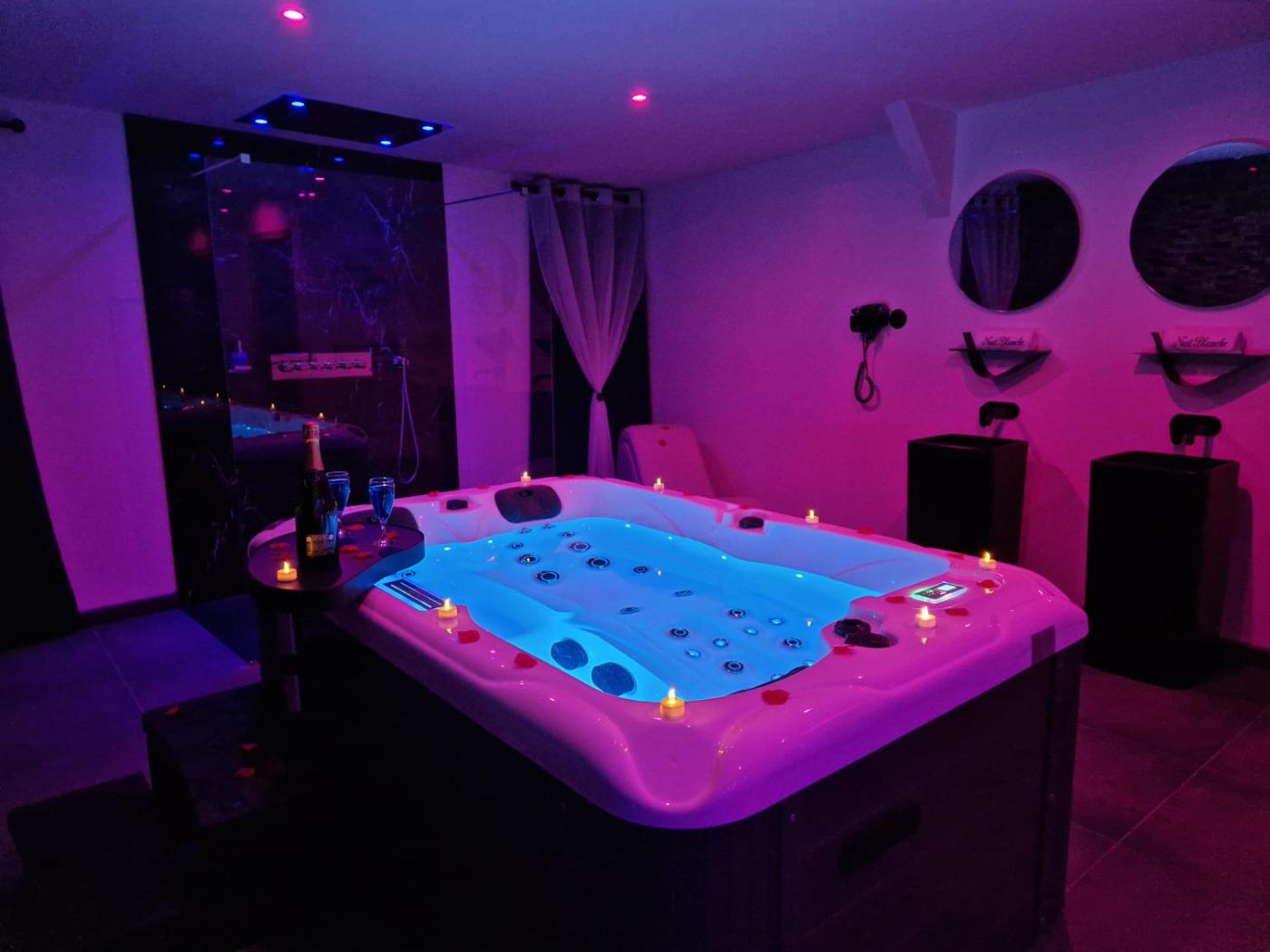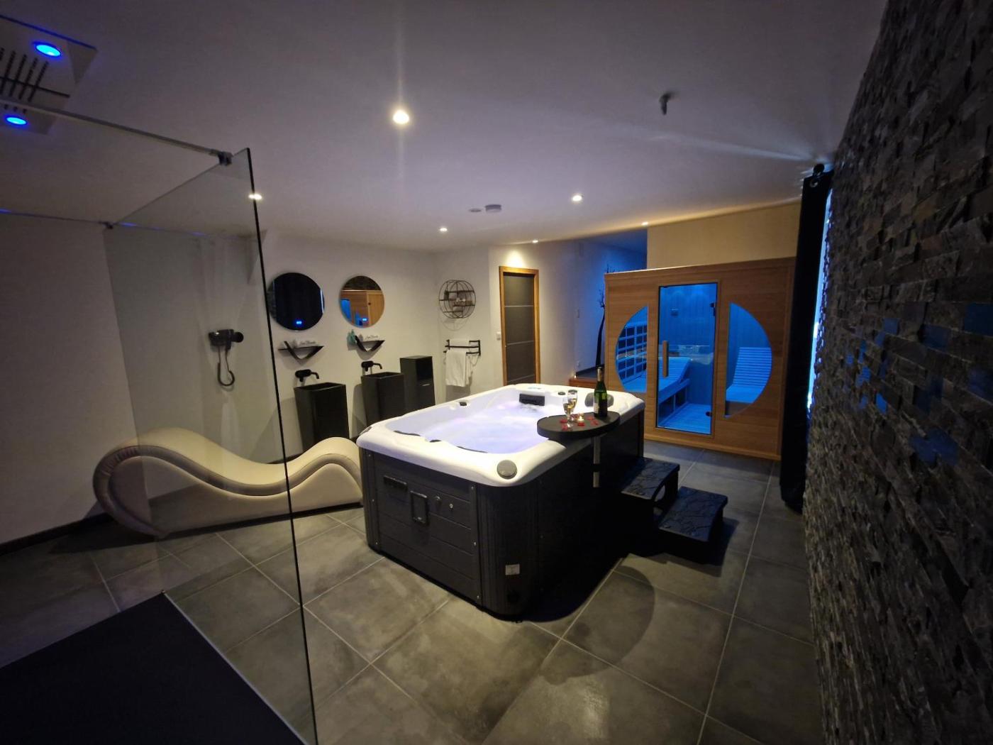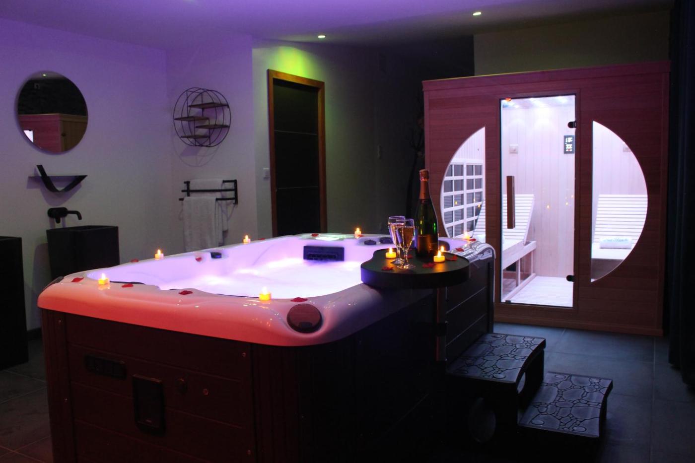 Chambre Lit King-Size avec Baignoire Spa. This double room boasts a spa bath and a sauna. Providing free toiletries and bathrobes, this double room includes a private bathroom with a walk-in shower, a hairdryer and slippers. The well-fitted kitchen features a stovetop, a refrigerator, a dishwasher and kitchenware. The spacious double room provides a private entrance, soundproof walls, a tea and coffee maker, a flat-screen TV with streaming services, as well as ancourtyard view. The unit offers 1 bed.
