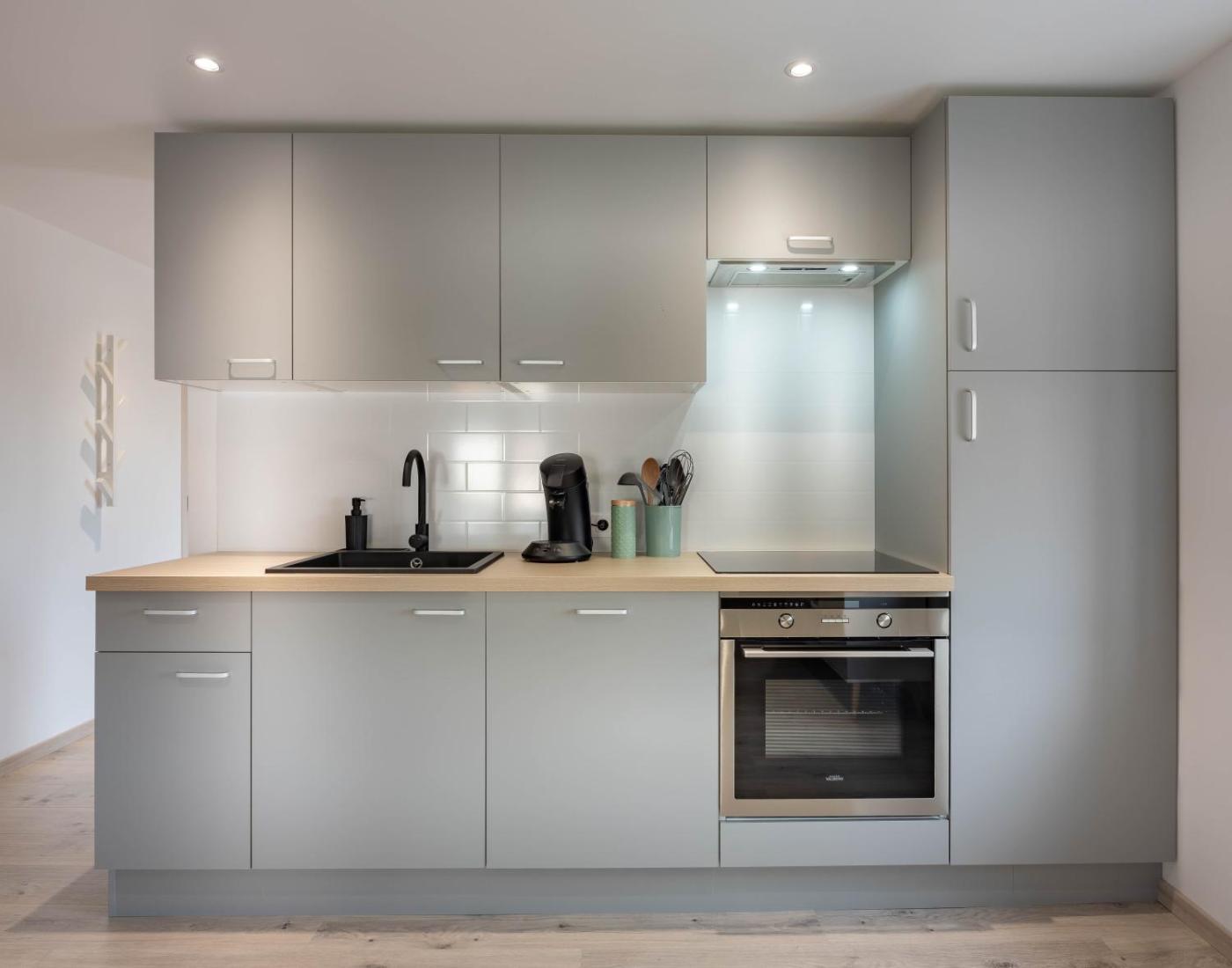 Appartement 2 Chambres. This apartment is comprised of 1 living room, 2 separate bedrooms and 1 bathroom with a walk-in shower and a hairdryer. In the well-equipped kitchen, guests will find a stovetop, a refrigerator, a dishwasher and kitchenware. The apartment offers a tea and coffee maker, a dining area, a high chair for children, a flat-screen TV, as well as city views. The unit offers 2 beds.
