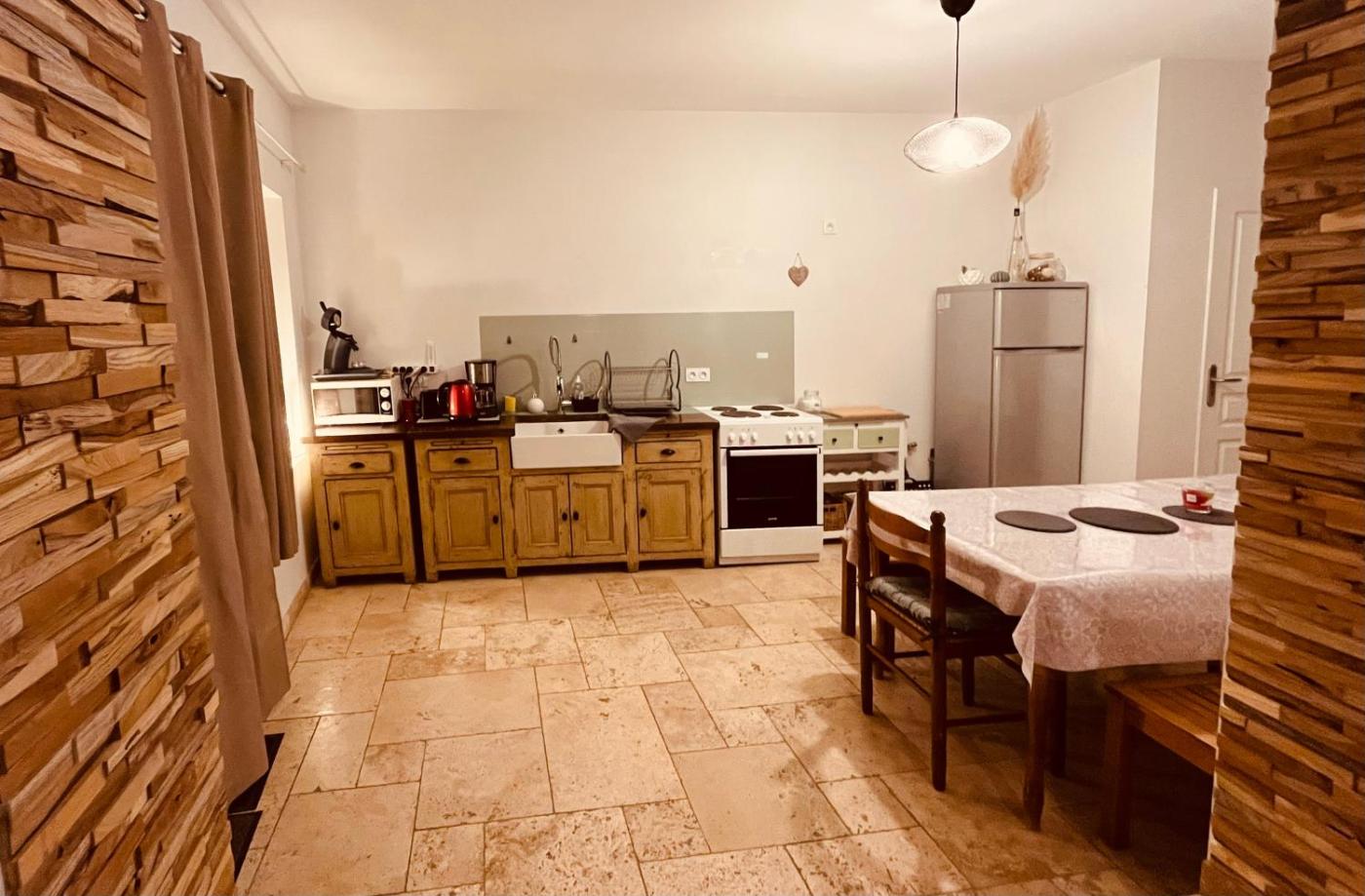 Maison 2 Chambres. The holiday home features a shared bathroom, a private entrance, a coffee machine, as well as a seating area with a flat-screen TV. Guests will find a stovetop, a refrigerator, kitchenware and an oven in the kitchen. The holiday home also offers a barbecue. The holiday home provides a dining area, a wardrobe, a sofa, a TV, as well as garden views. The unit offers 3 beds.