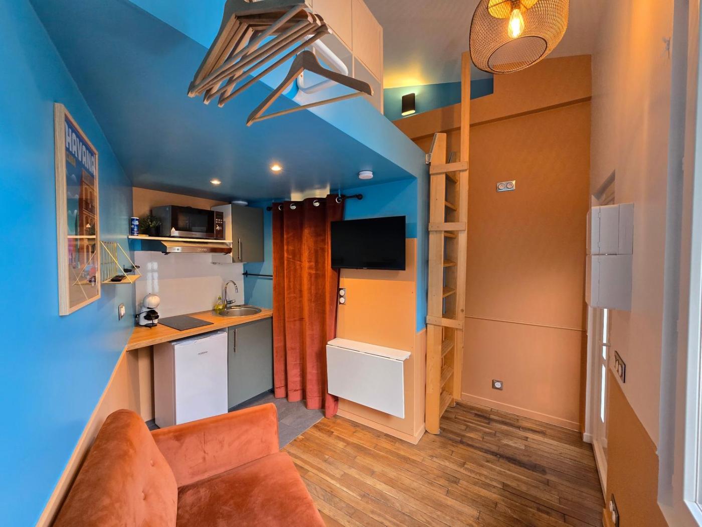Appartement 1 Chambre. The apartment features 1 bedroom and 1 bathroom with a shower and free toiletries. In the well-equipped kitchen, guests will find a stovetop, a refrigerator, kitchenware and a microwave. The apartment has parquet floors, a seating area, a private entrance, soundproof walls as well as ancourtyard view. The unit offers 1 bed.