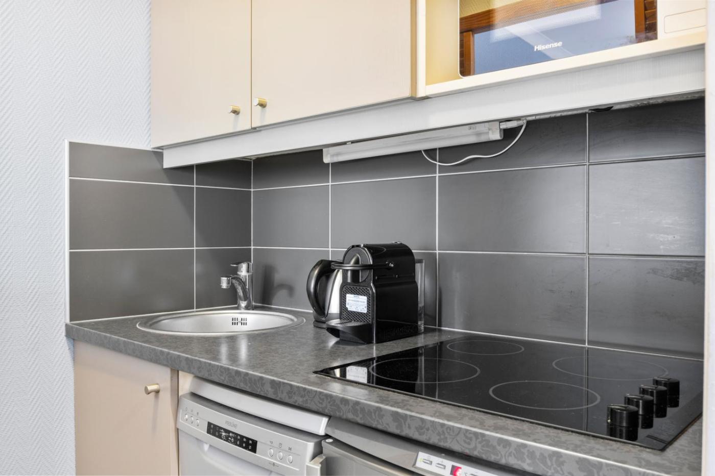 Appartement 1 Chambre. This air-conditioned apartment comes with 1 living room, 1 separate bedroom and 1 bathroom with a bath. Guests can make meals in the kitchen that features a stovetop, a refrigerator, a dishwasher and kitchenware. Boasting a balcony with a quiet street view, this apartment also features a washing machine and a flat-screen TV with cable channels. The unit has 2 beds.