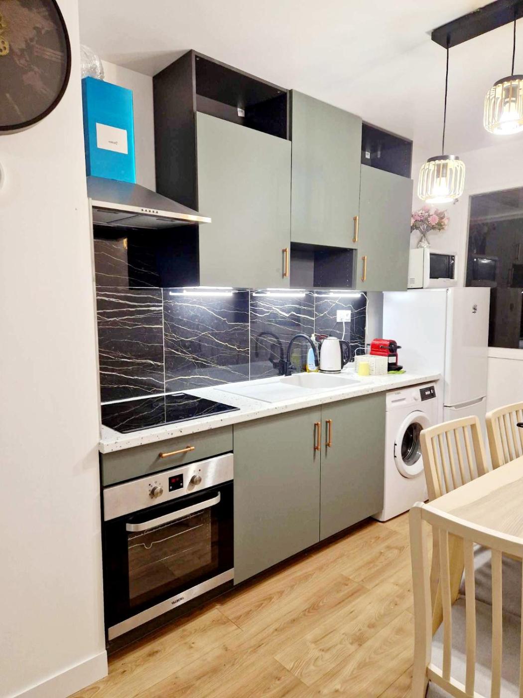 Cet appartement se compose de 3 chambres, dun salon, dune cuisine entièrement équipée avec un réfrigérateur et une machine à café, ainsi que de 2 salles de bains avec une baignoire ou une douche et des articles de toilette gratuits. Des serviettes et du linge de lit sont à votre disposition.