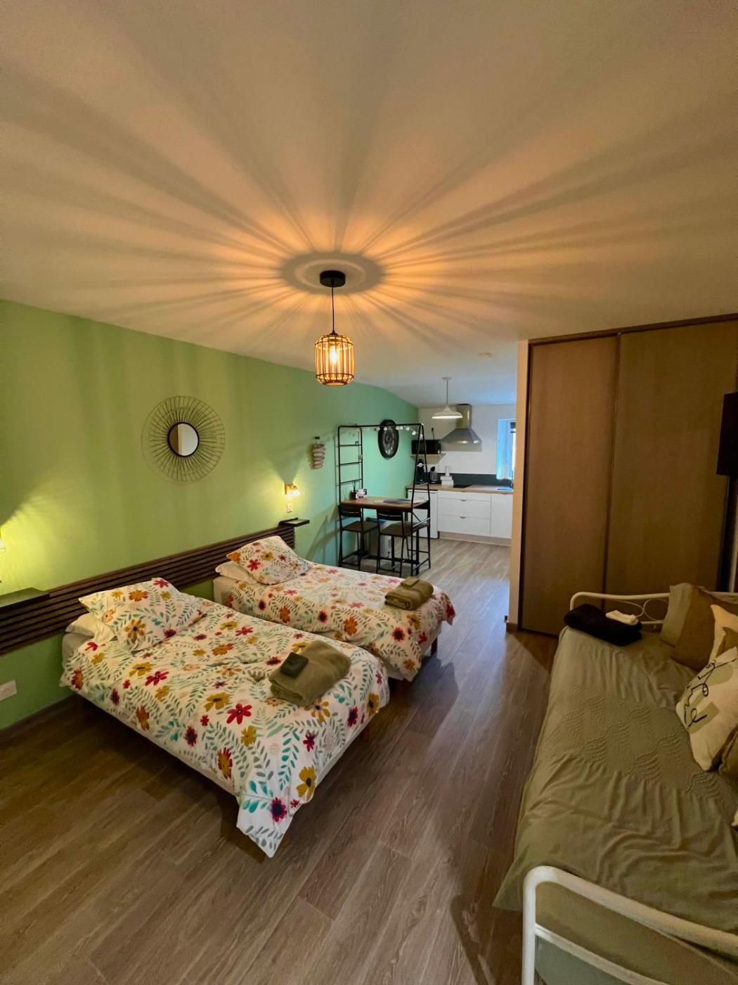Studio. In the well-equipped kitchenette, guests will find a stovetop, a refrigerator, kitchenware and a microwave. The studio offers air conditioning, a tea and coffee maker, as well as a private bathroom boasting a shower and a hairdryer. The unit has 2 beds. ;