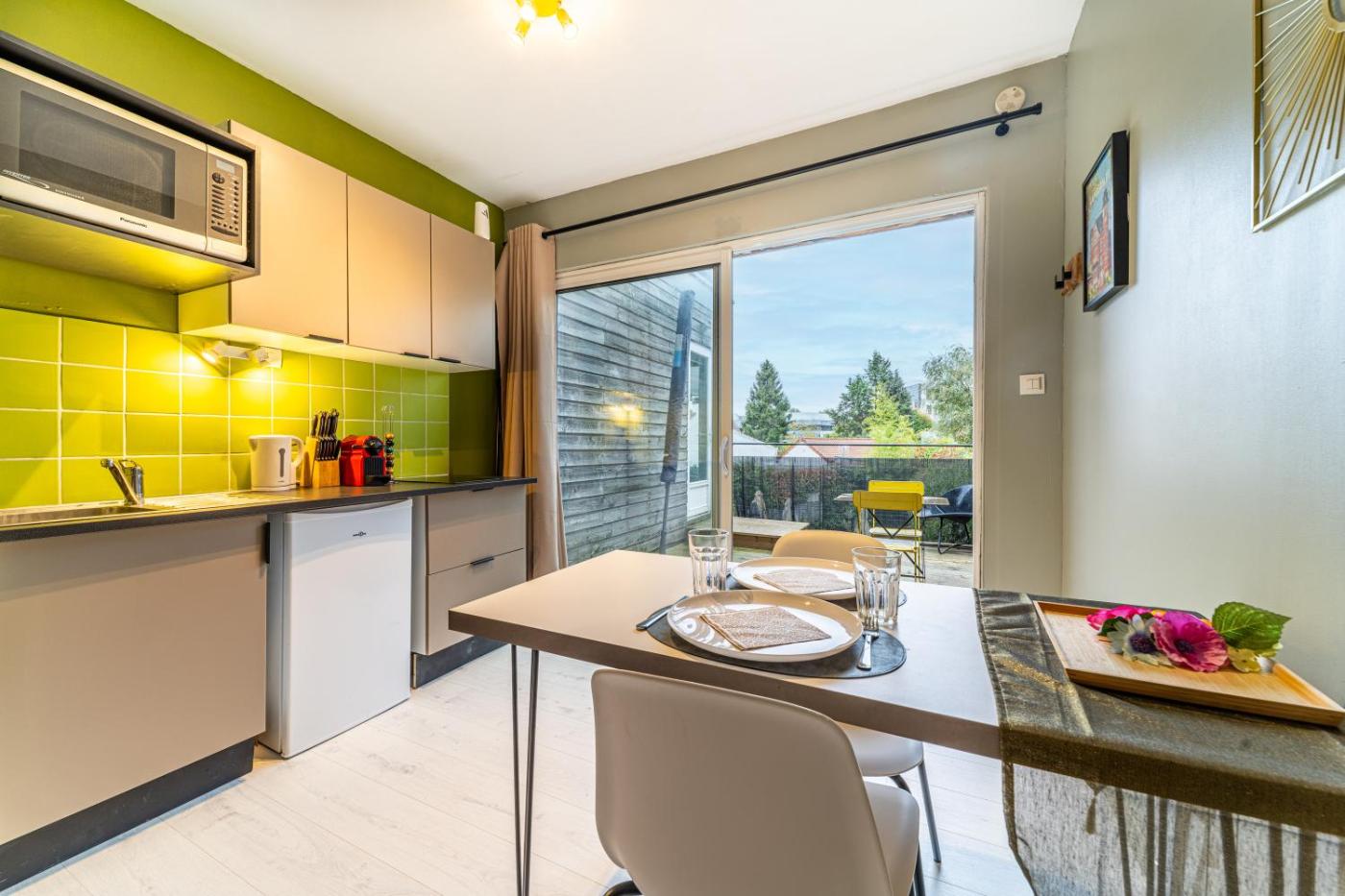 Appartement 1 Chambre. Meals can be prepared in the kitchen, which features a stovetop, a refrigerator, kitchenware and a microwave. Boasting a terrace with garden views, this apartment also features a washing machine and a flat-screen TV with streaming services. The unit has 1 bed.