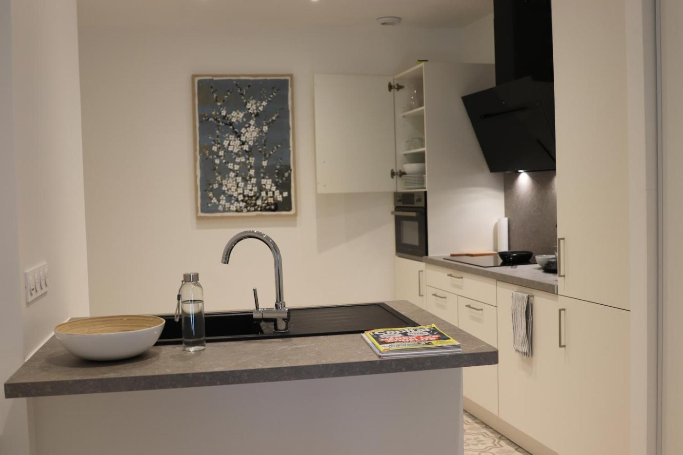 Appartement 1 Chambre. This apartment features a kitchen, a seating area, 1 separate bedroom and 1 bathroom with a shower and a hairdryer. The fully equipped kitchen has a stovetop, a refrigerator, a dishwasher and kitchenware. The apartment features a flat-screen TV, a coffee machine, a wardrobe, a sofa as well as a quiet street view. The unit has 1 bed. ;