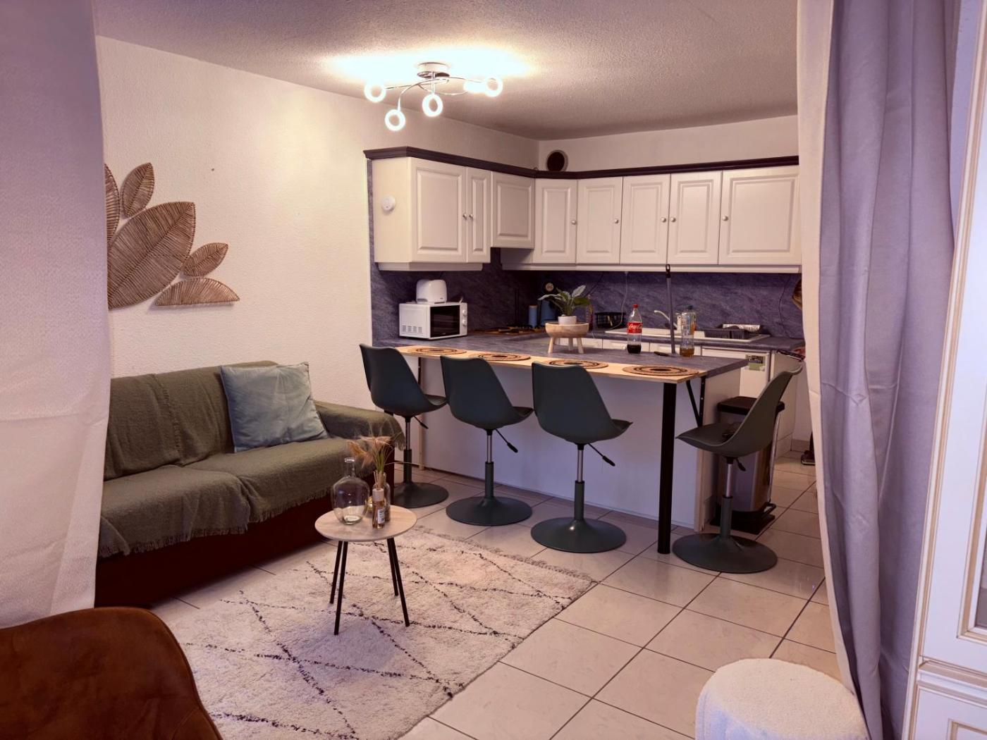 Appartement 1 Chambre. In the well-fitted kitchen, guests will find a stovetop, a refrigerator, kitchenware and an oven. Boasting a terrace with lake views, this apartment also features a washing machine and a flat-screen TV with cable channels. The unit has 2 beds.