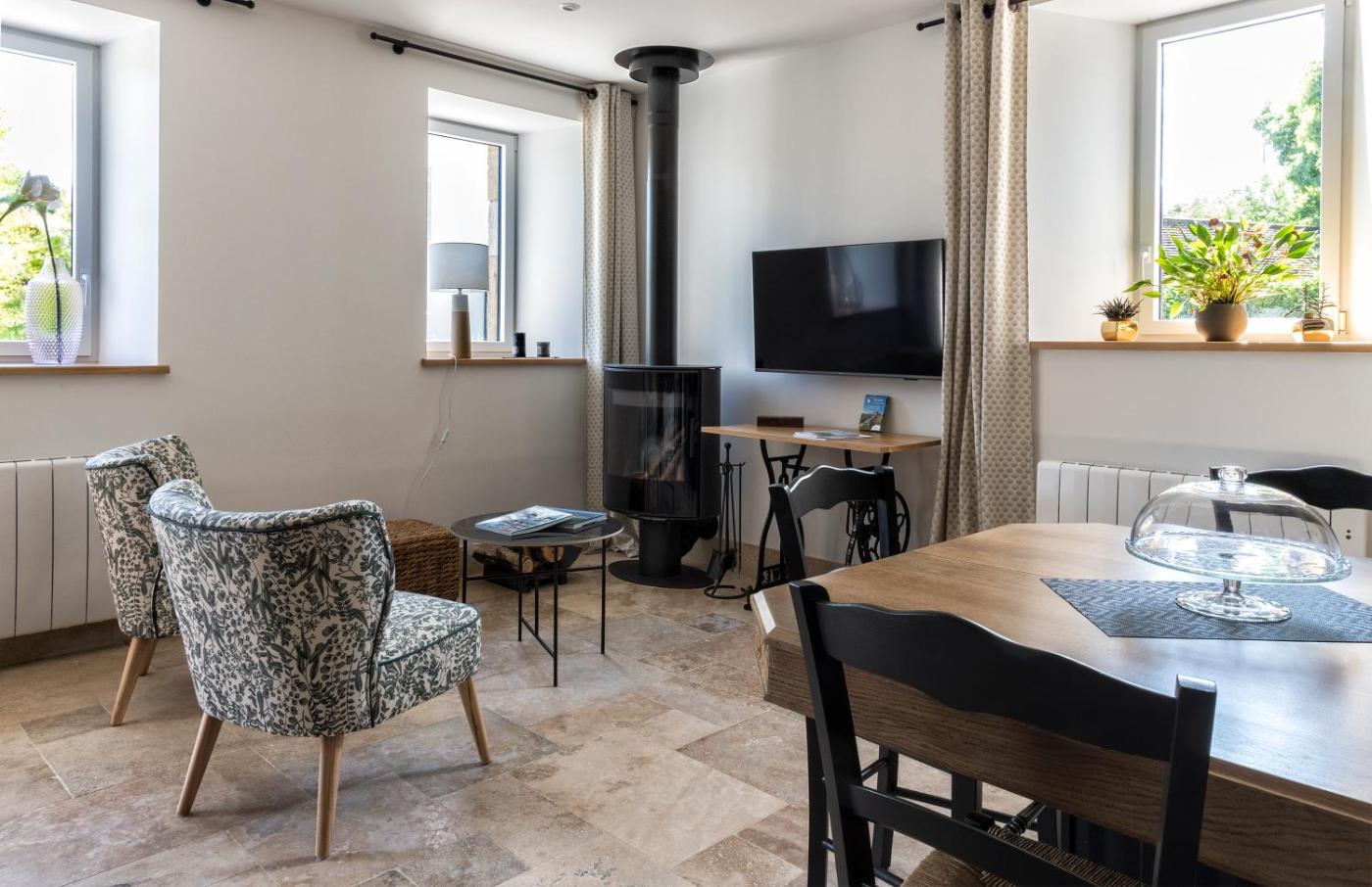 Chambre Lit King-Size Deluxe. Guests will have a special experience as the double room features a fireplace. Guests will find a stovetop, a refrigerator, a dishwasher and kitchenware in the well-fitted kitchen. The double room also offers a barbecue. The spacious double room provides a washing machine, a private entrance, a terrace with garden views as well as a private bathroom featuring a walk-in shower. The unit offers 1 bed.
