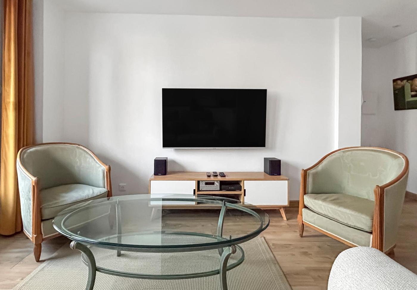 Cet appartement avec climatisation se compose de 2 chambres, dun salon, dune cuisine entièrement équipée avec un réfrigérateur et une machine à café, ainsi que de 1 salle de bains avec une douche et un sèche-cheveux. Des serviettes et du linge de lit sont mis à votre disposition.