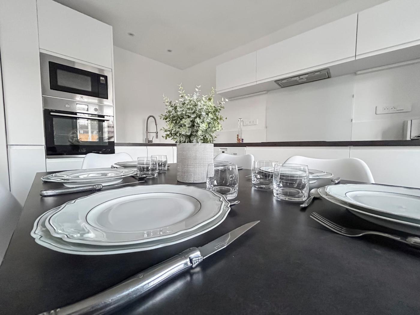 Appartement 2 Chambres. This air-conditioned apartment is comprised of 1 living room, 2 separate bedrooms and 1 bathroom with a walk-in shower. The well-fitted kitchen features a stovetop, a refrigerator, a dishwasher and kitchenware. Featuring a balcony with garden views, this apartment also offers a tea and coffee maker and a flat-screen TV with cable channels. The unit offers 4 beds.