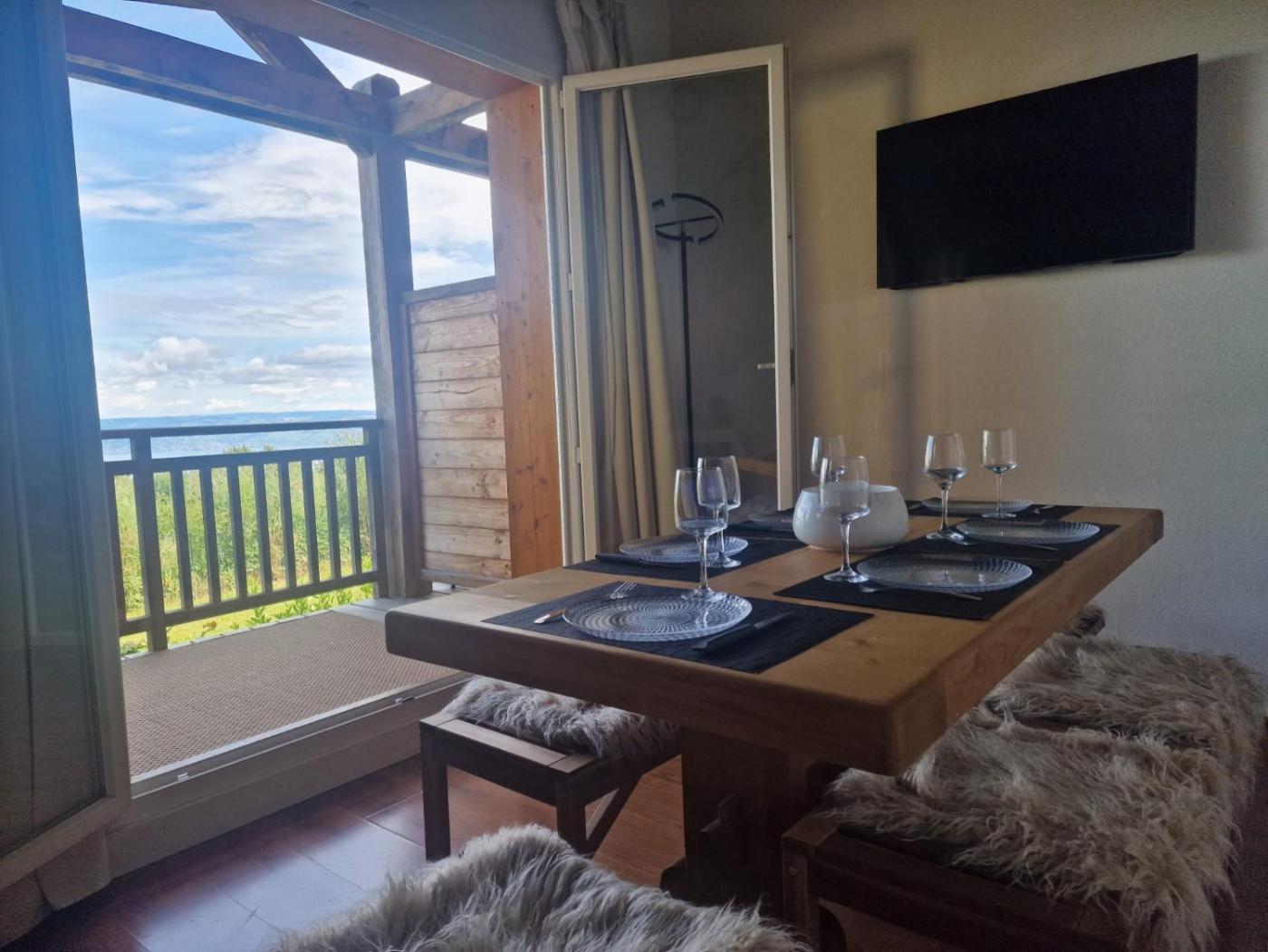 Appartement - Vue sur Lac. This apartment comprises 2 bedrooms, a kitchen and 1 bathroom with a bath and a hairdryer. The fully equipped kitchen features a refrigerator, a dishwasher, kitchenware and a microwave. This apartment has a tea and coffee maker, heating and a TV. The unit offers 4 beds.