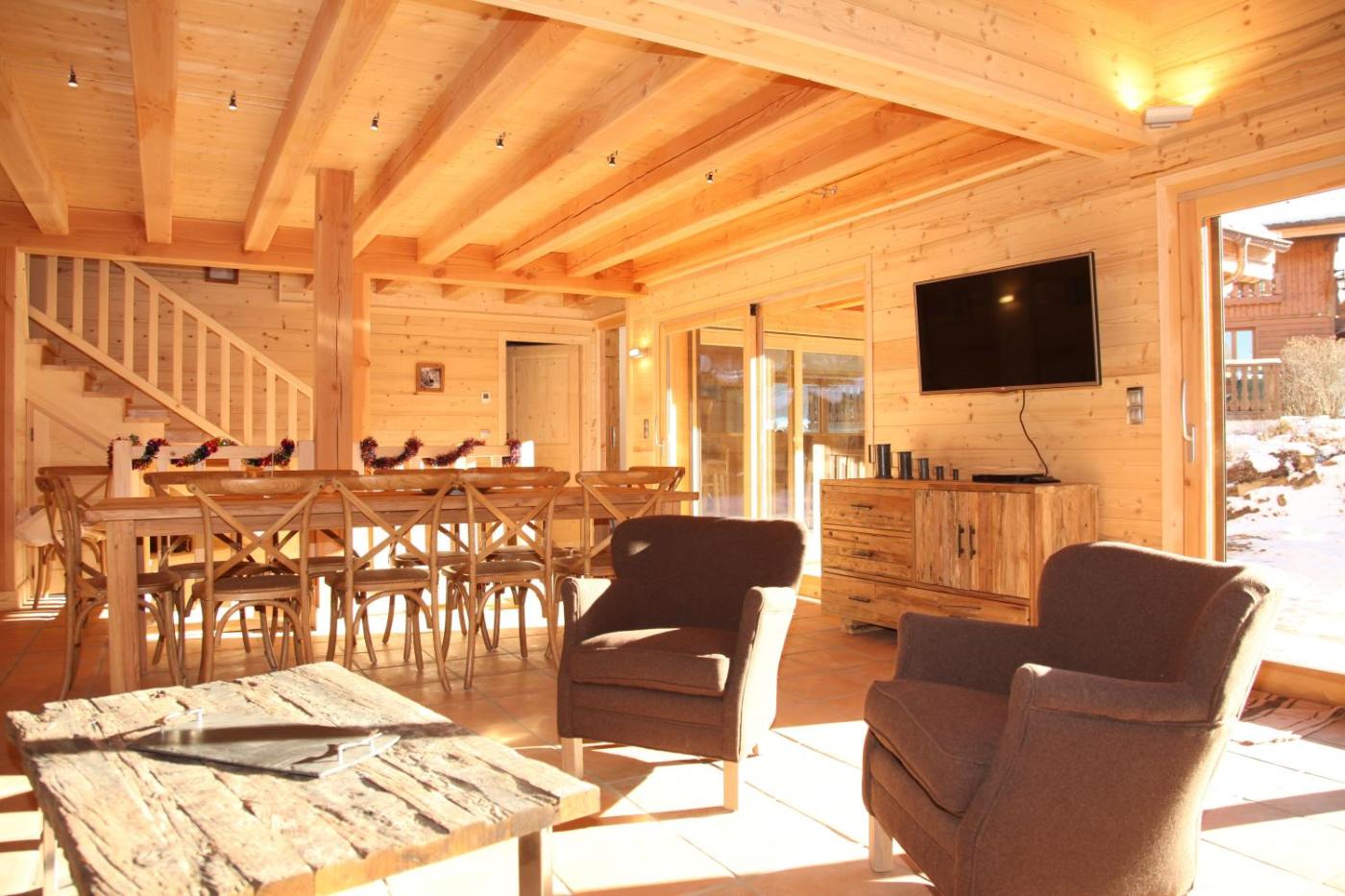 Chalet Supérieur. This chalet features a sauna. This spacious chalet features 1 living room, 5 separate bedrooms and 2 bathrooms with a walk-in shower and free toiletries. Guests will find a stovetop, a refrigerator, a dishwasher and kitchenware in the kitchen. The chalet also comes with a barbecue. Boasting a terrace with garden views, this chalet also features a washing machine and a flat-screen TV with cable channels. The unit has 7 beds.