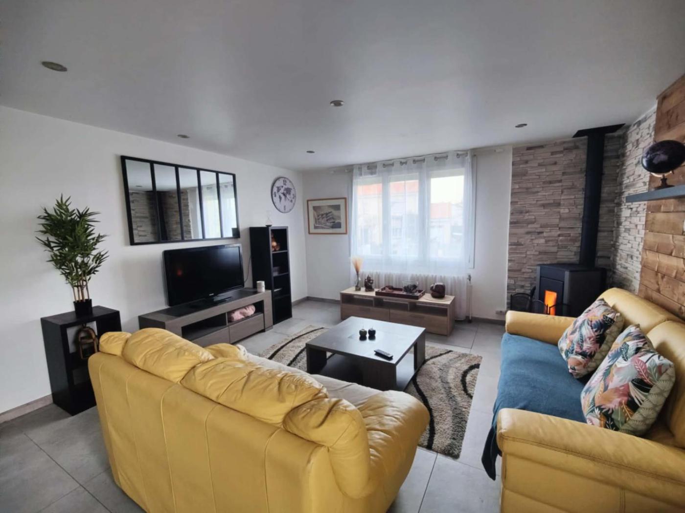 Maison 3 Chambres. Boasting a private entrance, this holiday home comes with 1 living room, 3 separate bedrooms and 1 bathroom with a shower and a hairdryer. Guests can make meals in the kitchen that features a stovetop, a refrigerator, kitchenware and an oven. The holiday home has parquet floors, a seating area with a flat-screen TV, soundproof walls, a tea and coffee maker, as well as a wardrobe. The unit has 4 beds.