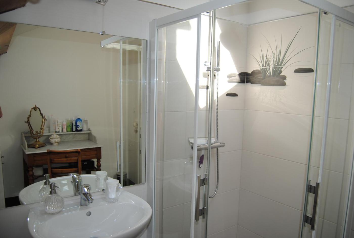 Chambre Lits Jumeaux avec Salle de Bains Commune. Guests can make meals in the kitchen that features a stovetop, a refrigerator, kitchenware and a microwave. The twin room features a private entrance, soundproof walls, a terrace with garden views as well as a shared bathroom boasting a walk-in shower. The unit has 2 beds.