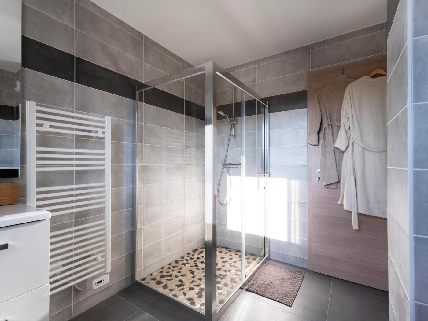 Appartement 1 Chambre. This apartment comprises 1 bedroom, kitchen, a terrace and 1 bathroom with a shower. The well-fitted kitchen features a stovetop, a refrigerator, a dishwasher and kitchenware. The apartment provides a washing machine, a coffee machine, a wardrobe, a flat-screen TV, as well as city views. The unit offers 1 bed.