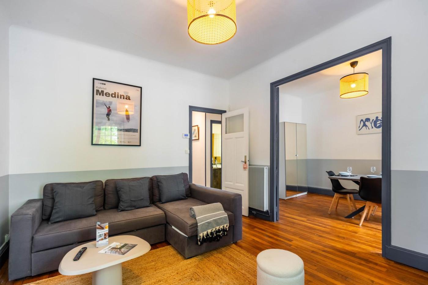 Appartement 1 Chambre. This apartment comprises 1 living room, 1 separate bedroom and 1 bathroom with a bath and free toiletries. In the kitchen, guests will find a refrigerator, a dishwasher, kitchenware and a microwave. The apartment provides a washing machine, a tea and coffee maker, a wardrobe, tumble dryer and a TV. The unit offers 2 beds.