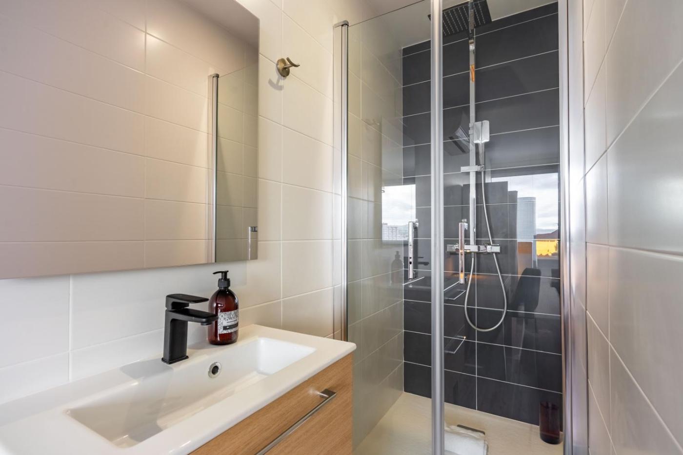 Cet appartement avec climatisation se compose de 4 chambres, dun salon, dune cuisine entièrement équipée avec un réfrigérateur et une bouilloire, ainsi que de 4 salles de bains avec une douche et des articles de toilette gratuits. Cet hébergement 3 étoiles propose un parking privé gratuit ainsi qu’une connexion Wi-Fi gratuite dans l’ensemble de ses locaux.