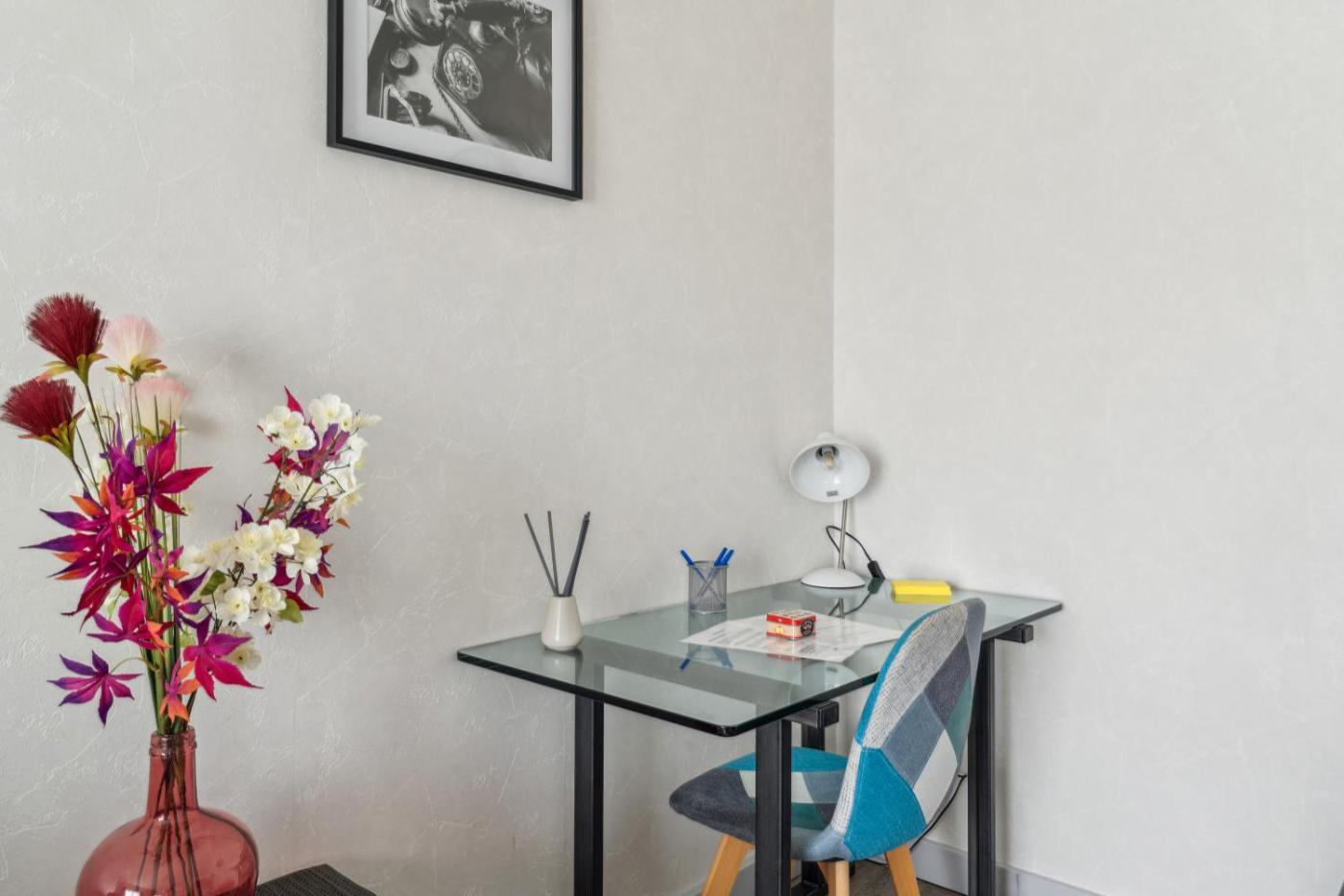 Appartement 1 Chambre. This apartment features 1 living room, 1 separate bedroom and 1 bathroom with a bath and free toiletries. Guests can make meals in the kitchen that has a stovetop, a refrigerator, kitchenware and an oven. Boasting a balcony, this apartment also features a washing machine, a tea and coffee maker and a flat-screen TV. The unit has 2 beds.