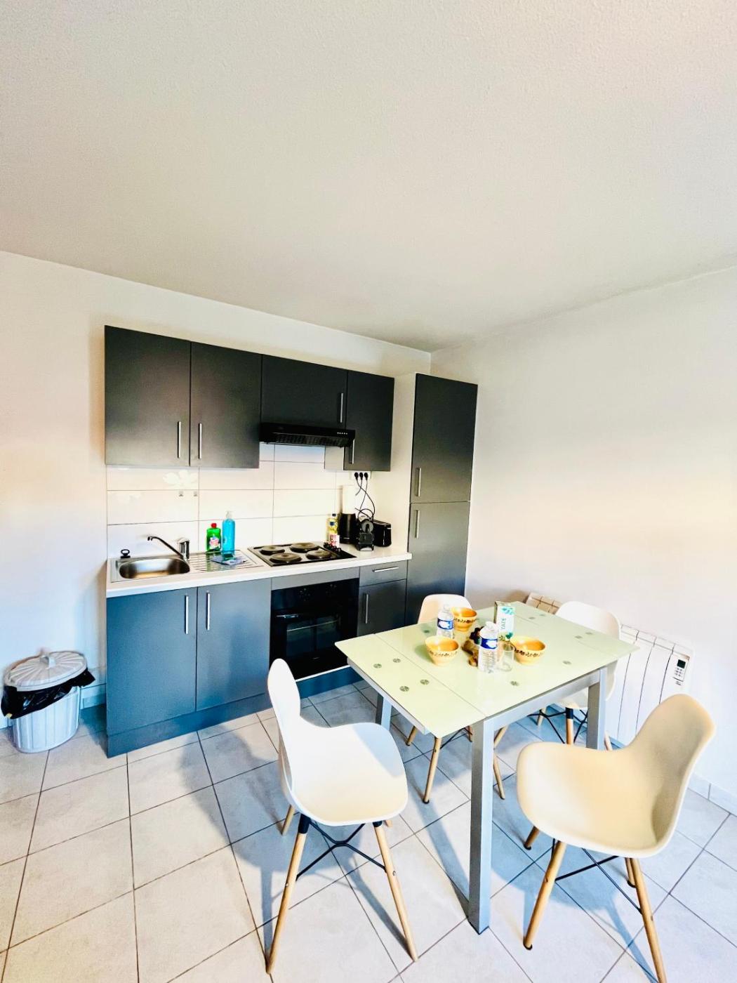 Cet appartement comprend un balcon, 1 chambre, un salon et une cuisine bien équipée.