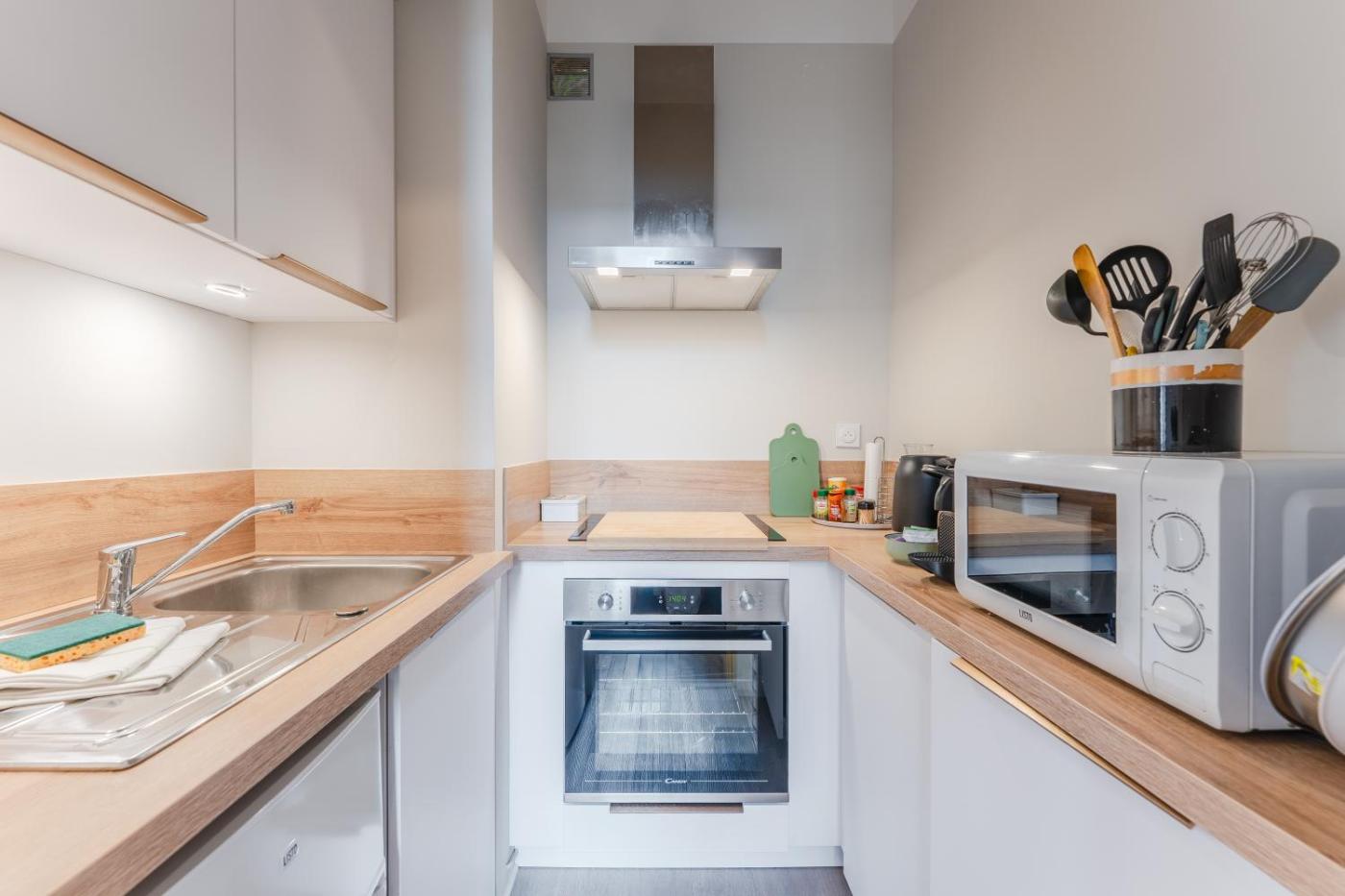 Appartement 1 Chambre. This apartment includes 1 living room, 1 separate bedroom and 1 bathroom with a shower and free toiletries. In the well-equipped kitchen, guests will find a refrigerator, kitchenware, an oven and a microwave. The apartment offers a washing machine, a tea and coffee maker, a wardrobe, a sofa and a TV with cable channels. The unit has 2 beds.