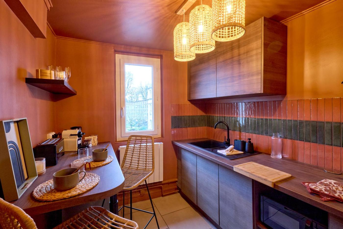 Appartement 1 Chambre. The apartments kitchen, which features a refrigerator and a microwave, is available for cooking and storing food. This apartment has a tea and coffee maker, heating and a flat-screen TV with streaming services. The unit has 1 bed.