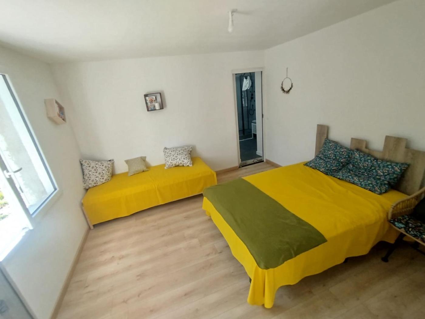 Chambre Double. The fireplace is a top feature of this double room. The well-fitted kitchen has a stovetop, a refrigerator, kitchenware and an oven. The spacious double room features a dining area, as well as a private bathroom boasting a shower. The unit has 1 bed.