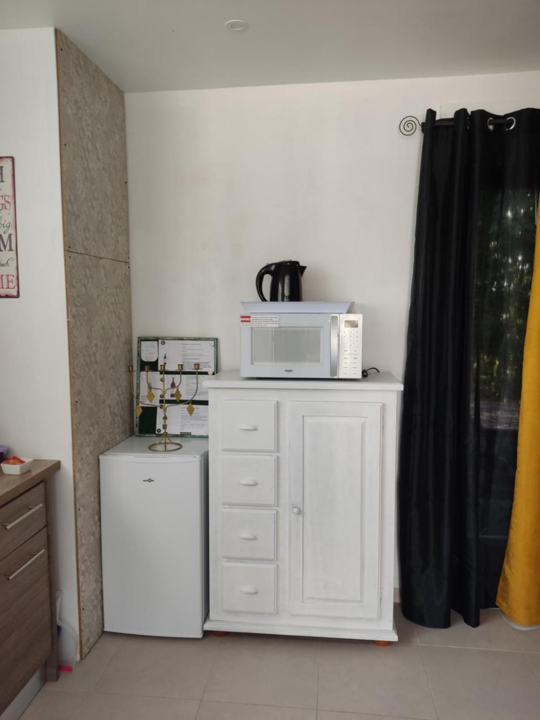 Cet appartement comporte 1 chambre, une télévision à écran plat, ainsi qu’une cuisine.